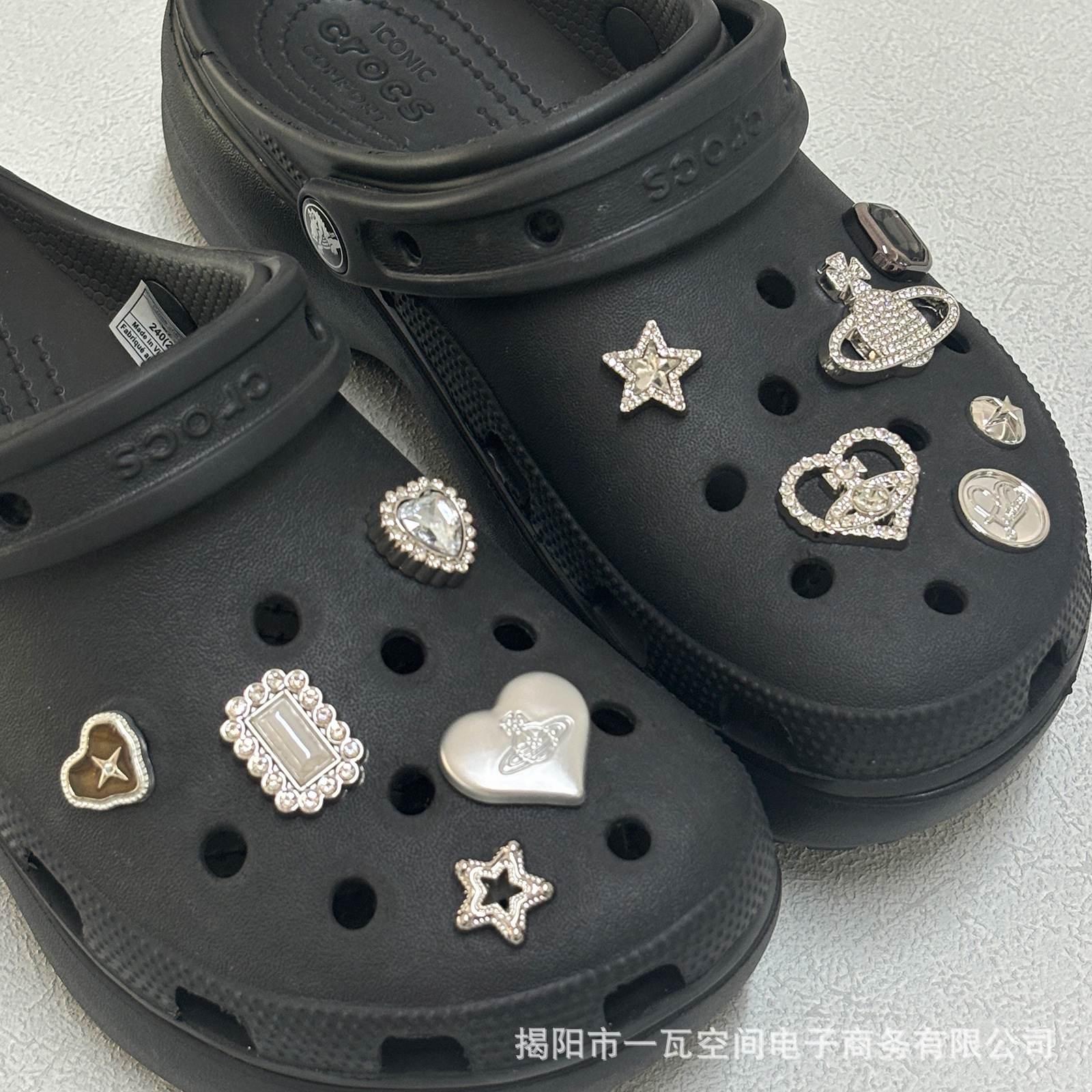Главная страница > Туфли в стиле Little Red Book с перекрестными отверстиями, ретро-потерянный Сатурн, съемные, DIY, украшенные стразами и цветами, аксессуары для обуви