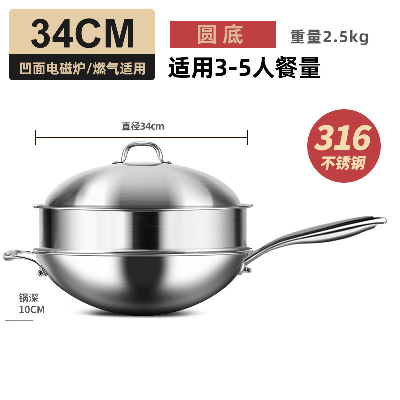 Главная страница > Прочный вок из нержавеющей стали 316, кастрюля без покрытия с круглым дном, вогнутая газовая плита, индукционная плита с плоским дном, посуда