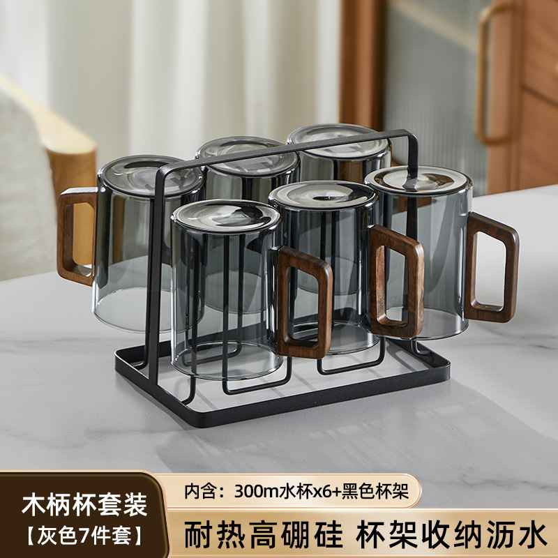 - Утолщенная деревянная ручка дымчато-серая одинарная чашка 350мл+2 шт.