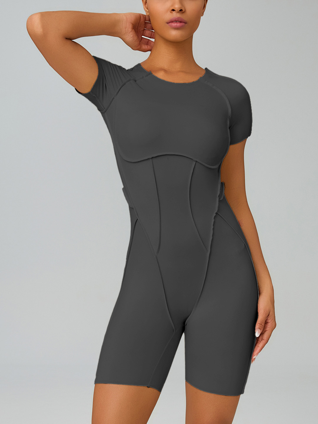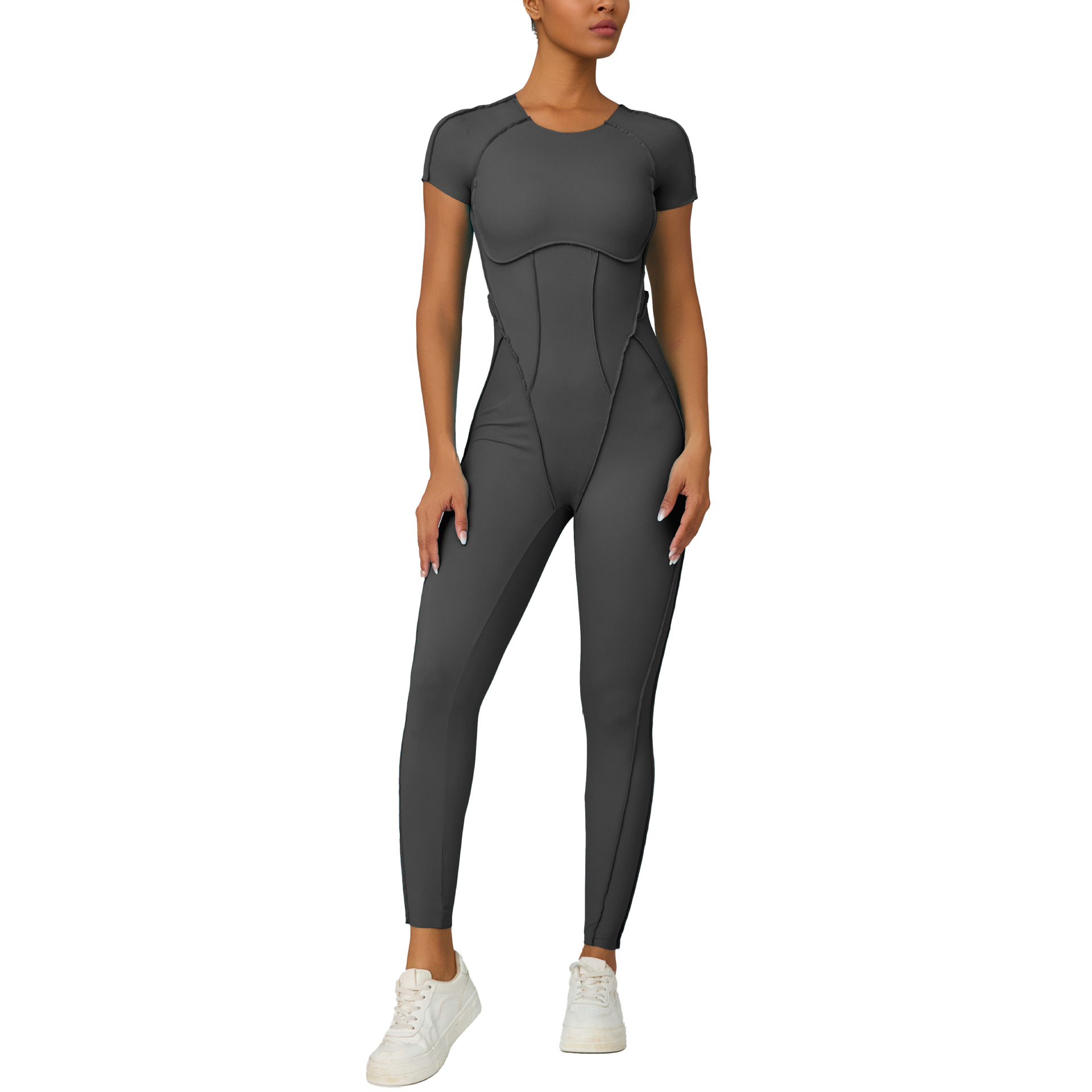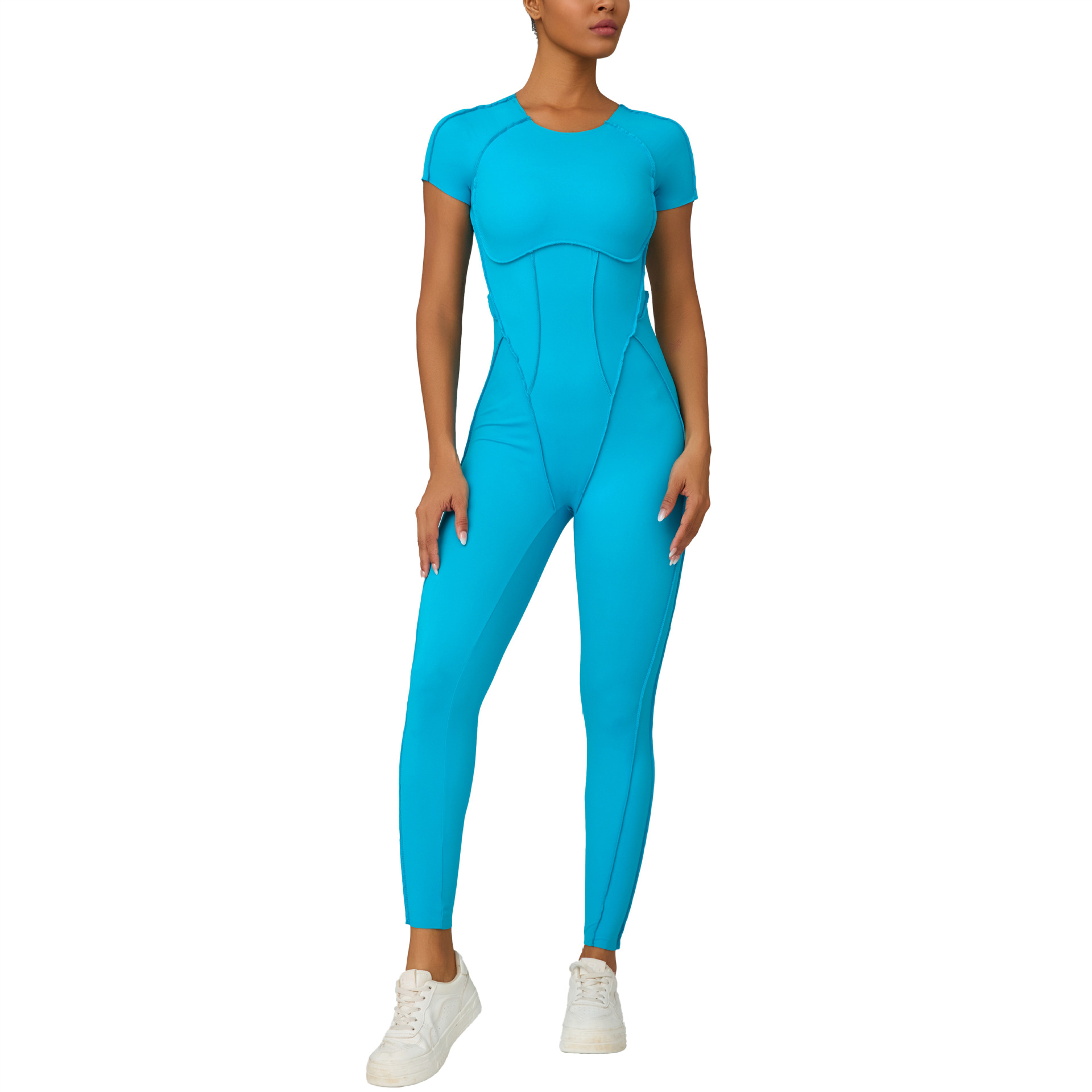 Главная страница > Спортивный костюм-комбинезон для фитнеса и танцев, облегающий, с короткими рукавами и открытой спиной, в европейско-американском стиле.