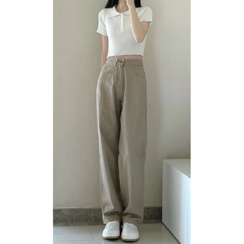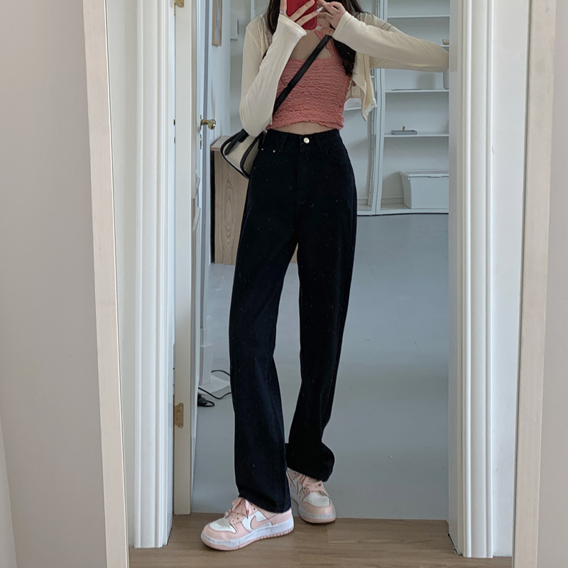 Главная страница > Прямые Джинсы женские весна-осень 2022 Новые широкие брюки больших размеров с высокой талией, стройнящие универсальные повседневные длинные брюки, модные