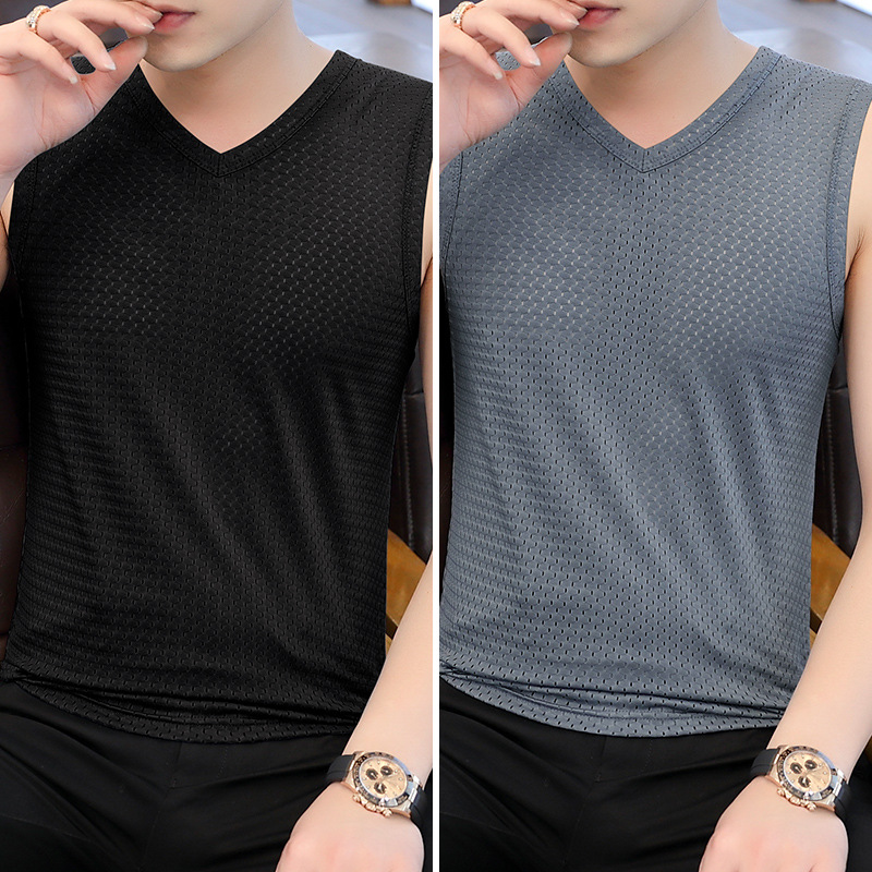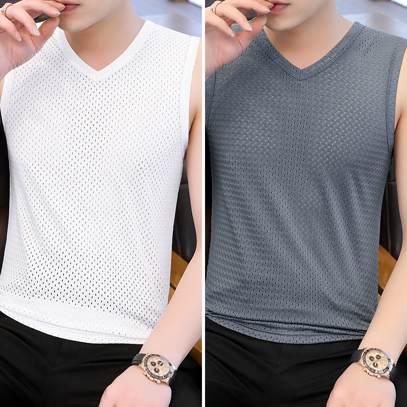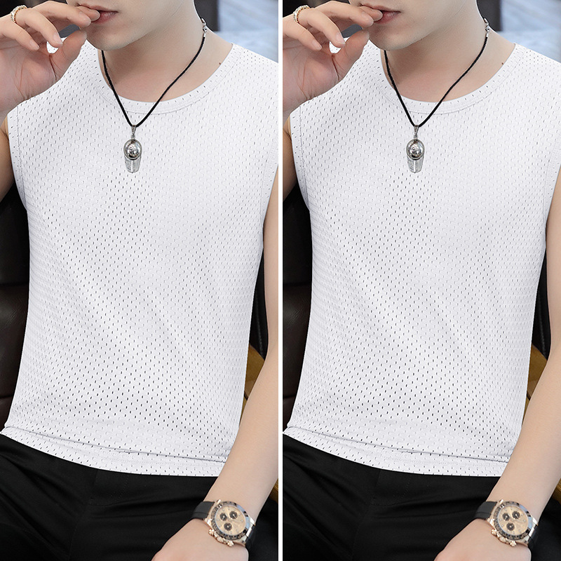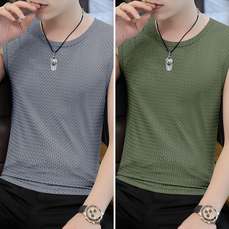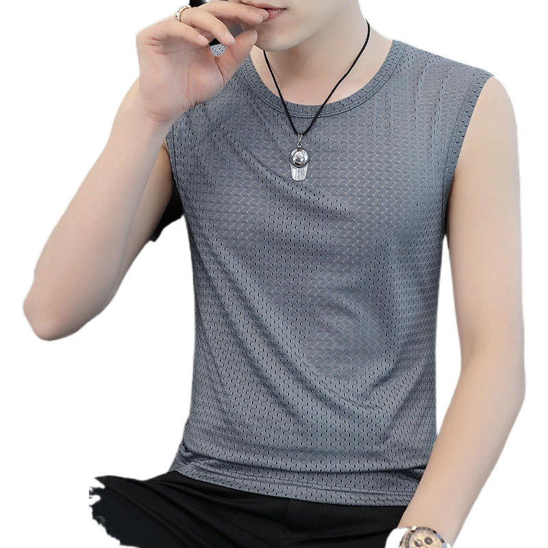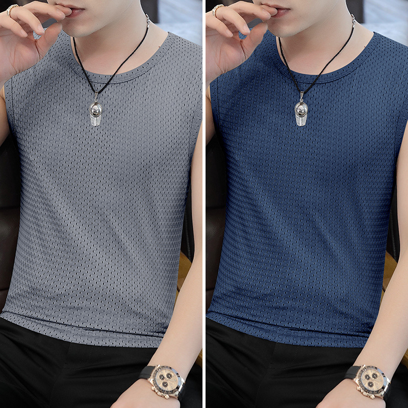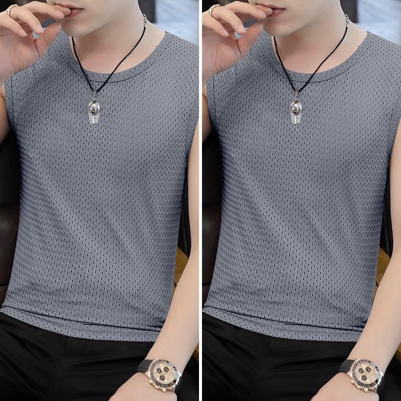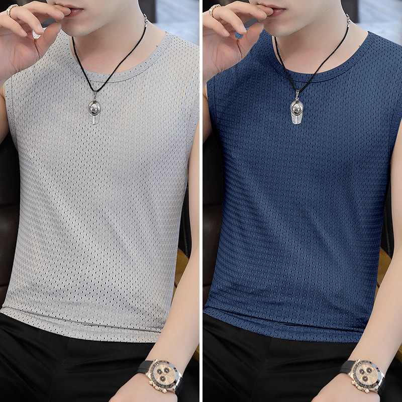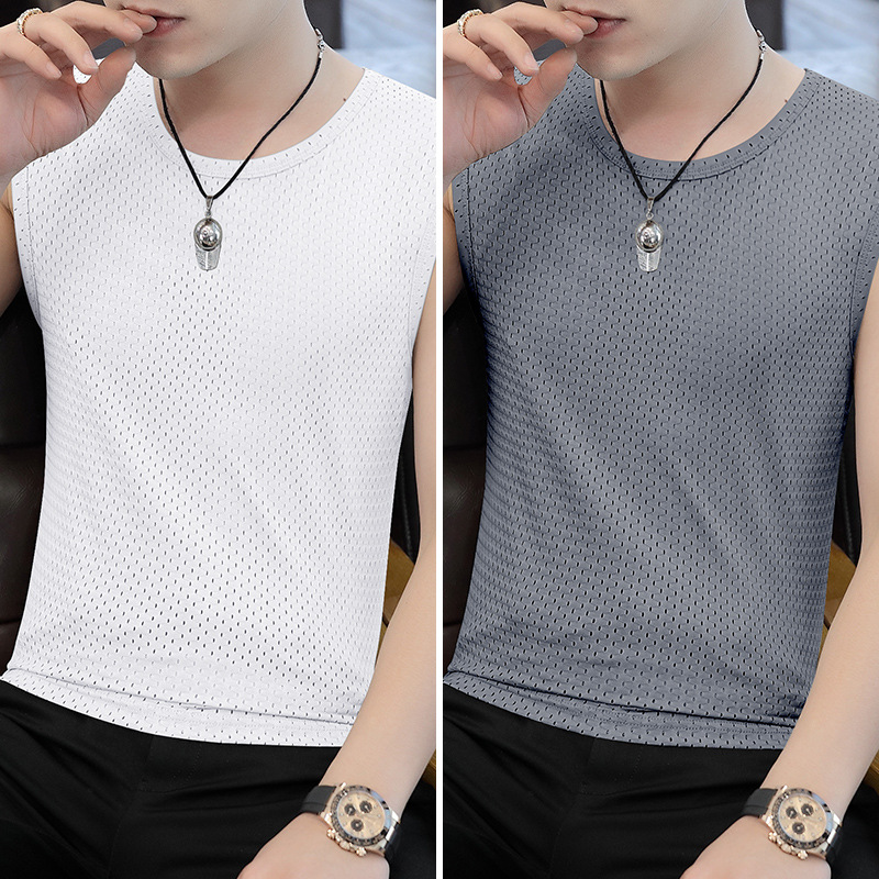 Штук] Сетчатый дышащий ледяной шелк мужской жилет прилив круглый воротник без шт.