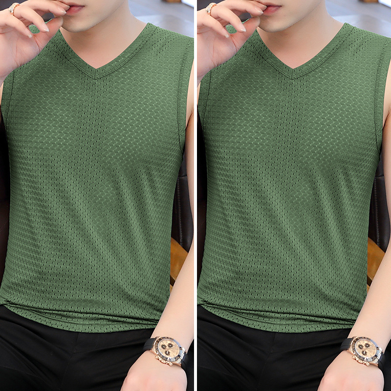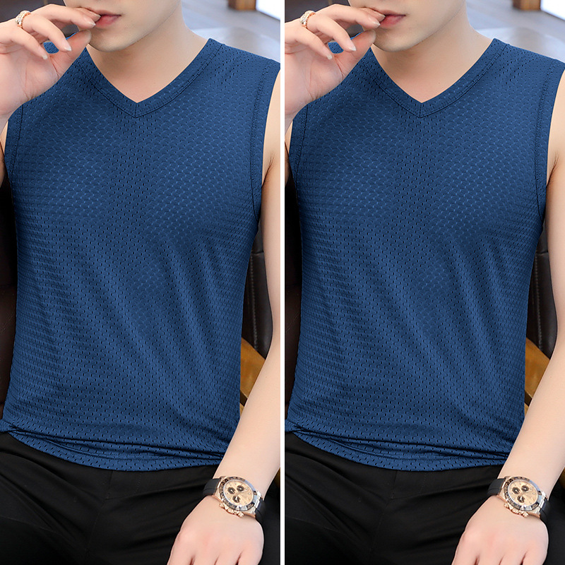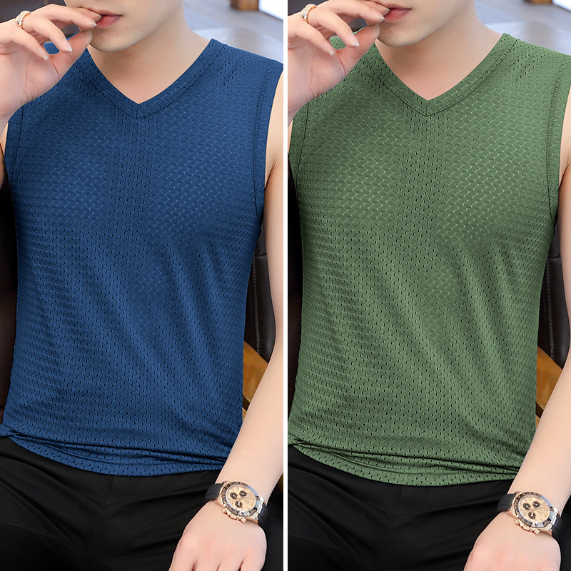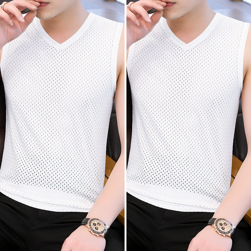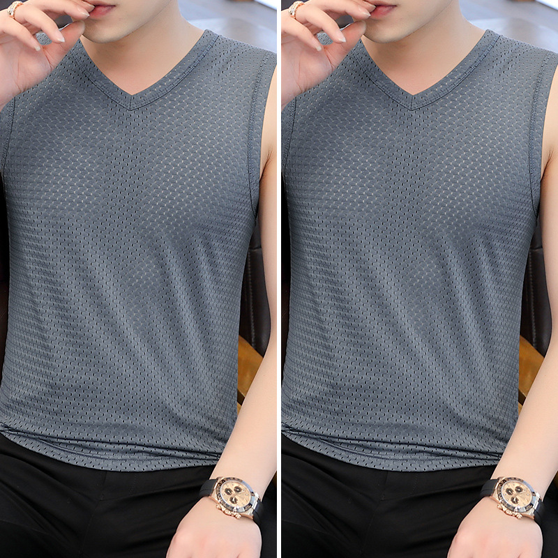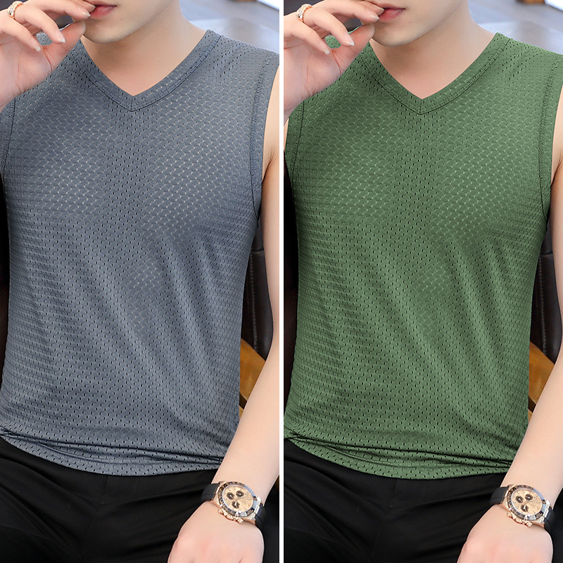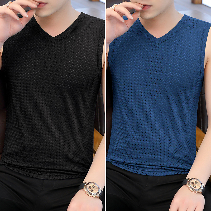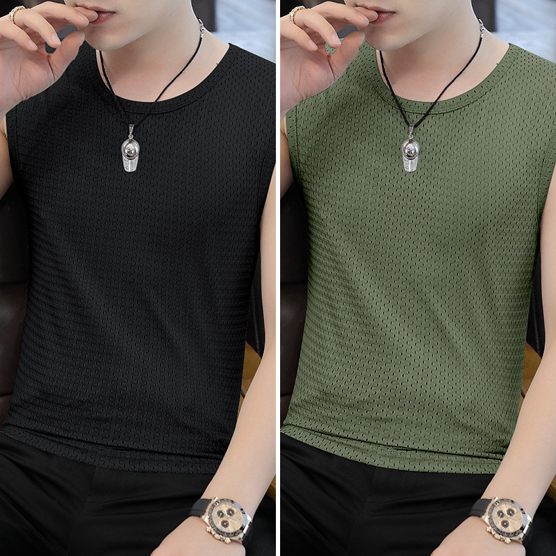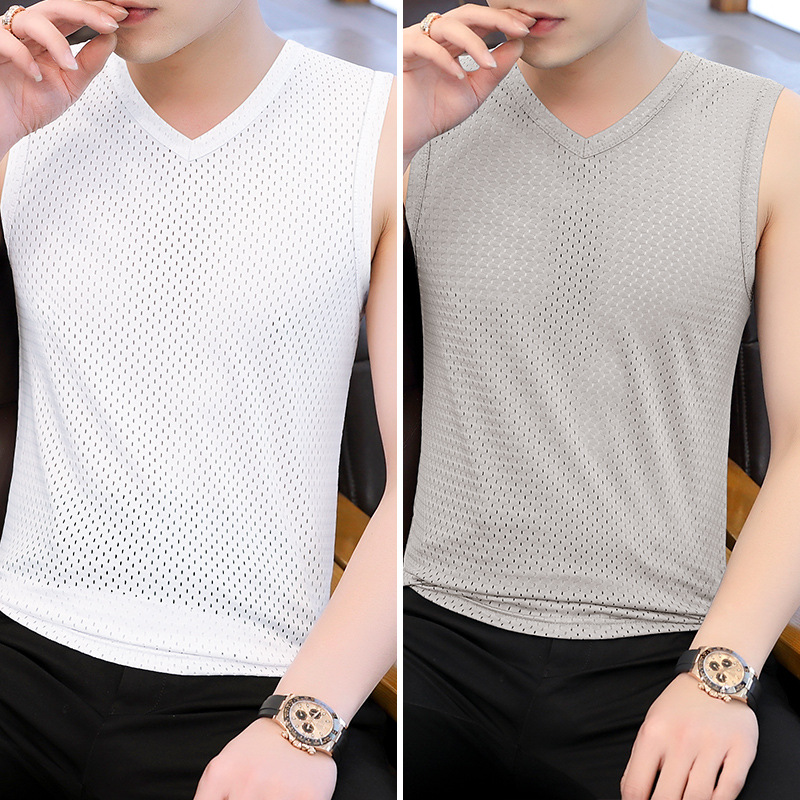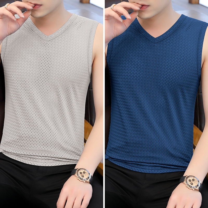 Штук] Сетчатый дышащий ледяной шелк мужской жилет прилив круглый воротник без шт.