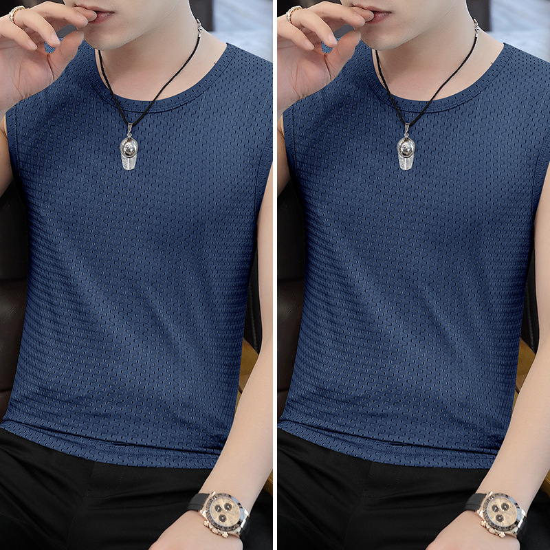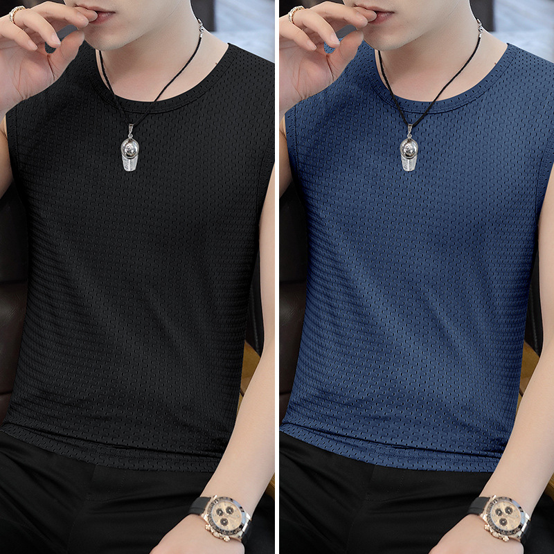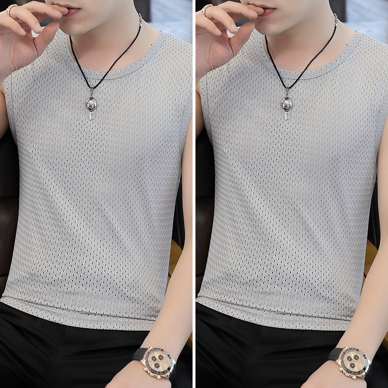 Главная страница > Штук] Сетчатый дышащий ледяной шелк мужской жилет прилив круглый воротник без шт.