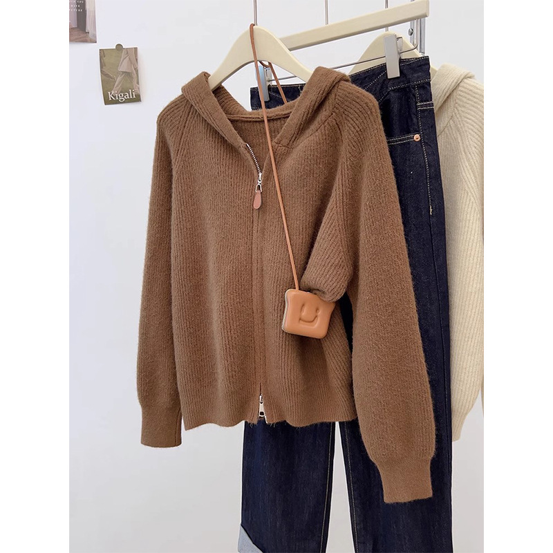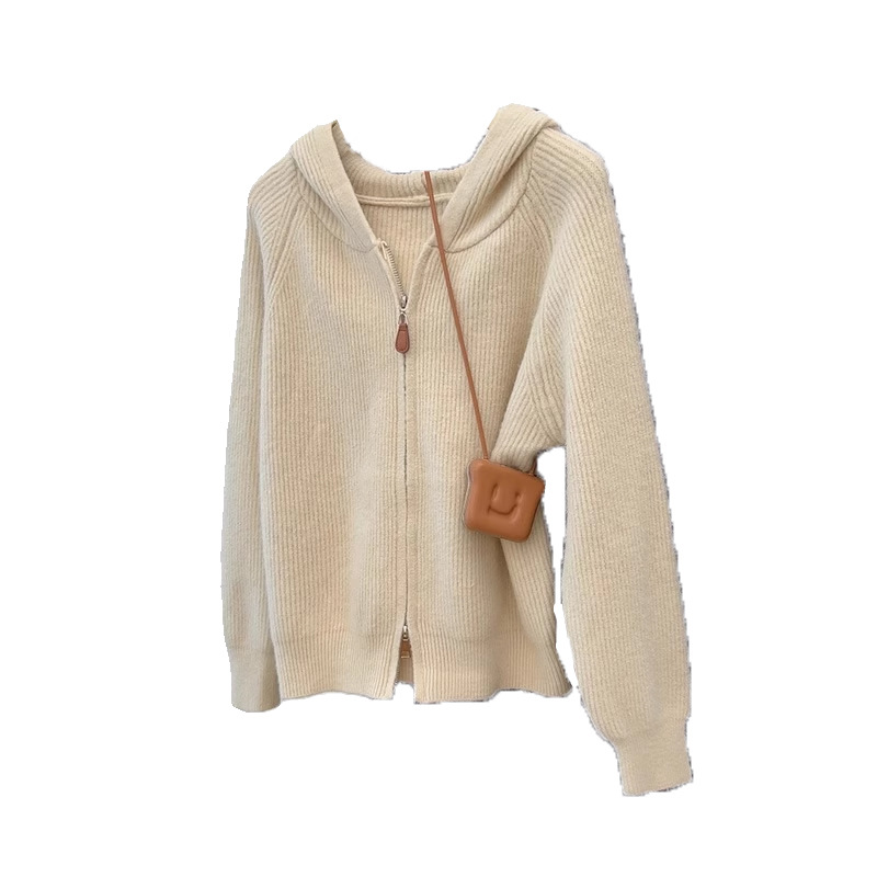 Главная страница > Модный светло-хаки с капюшоном свитер свитер женский осенний и зимний новый свободный ленивый трикотажный кардиган