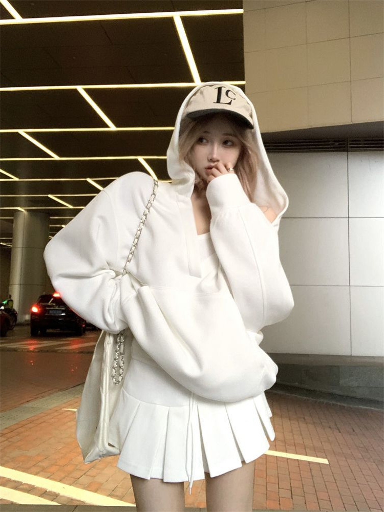 Главная страница > Американский ретро белый свитер с длинными рукавами с капюшоном женский свободный ленивый стиль повседневный пуловер топ