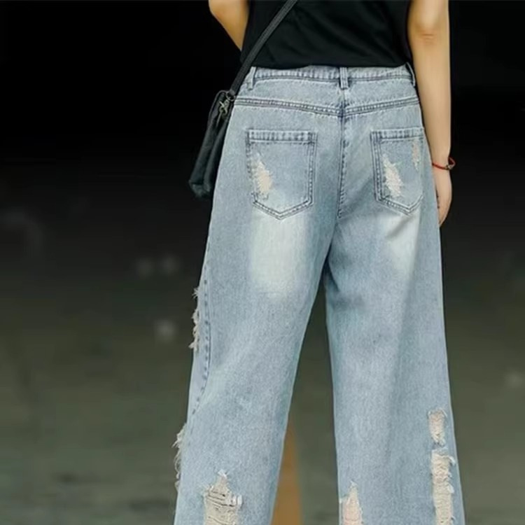 Главная страница > Ретро старые дырки джинсы женские летние тонкие длинные свободные широкие брюки с высокой талией