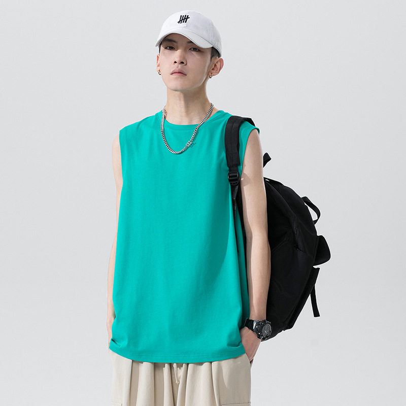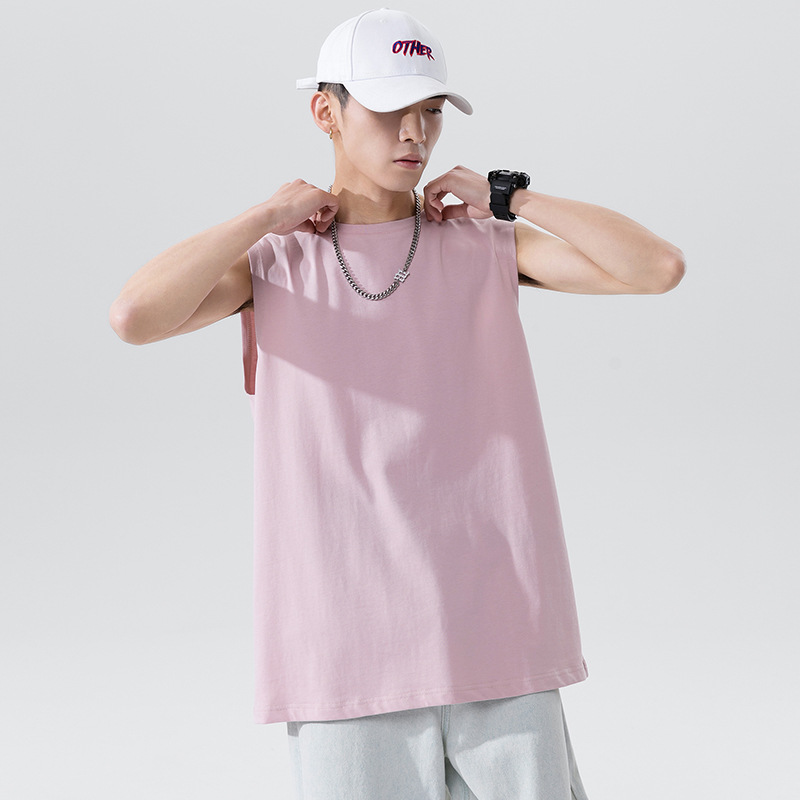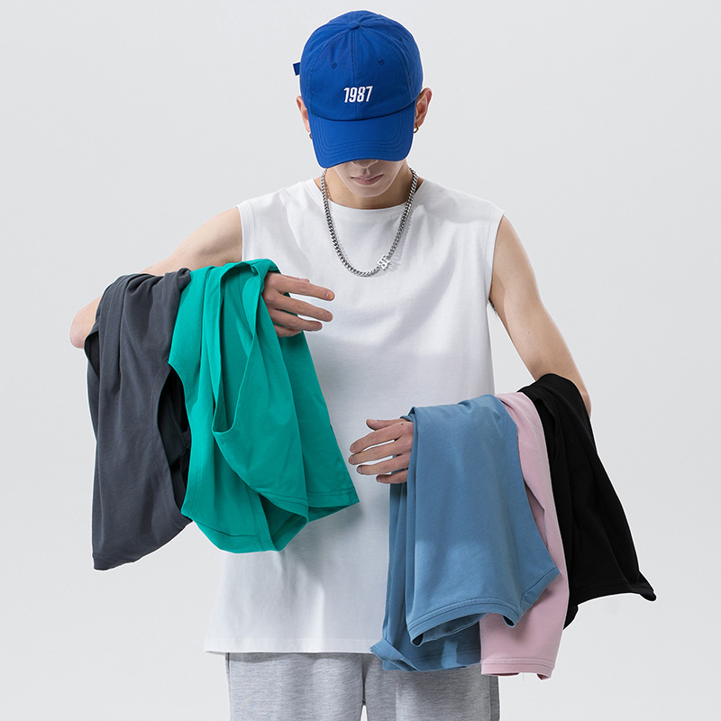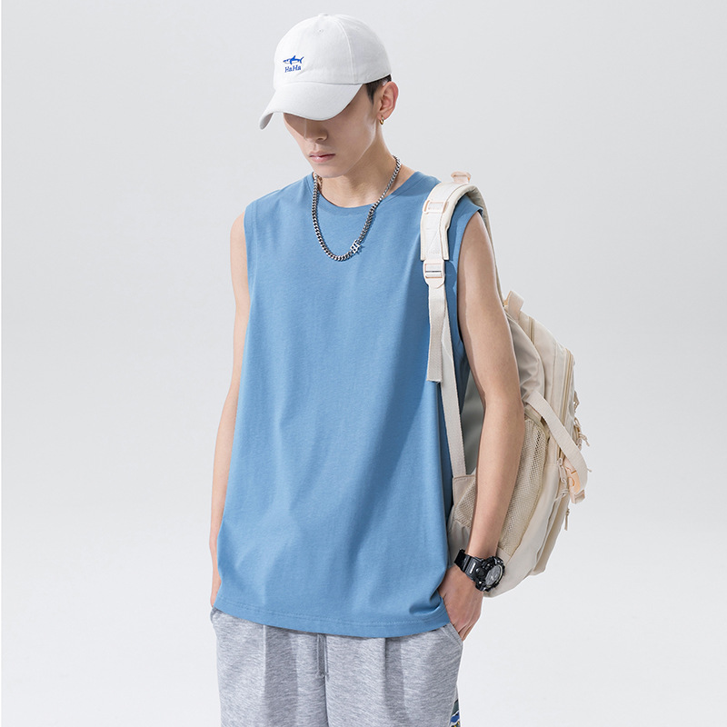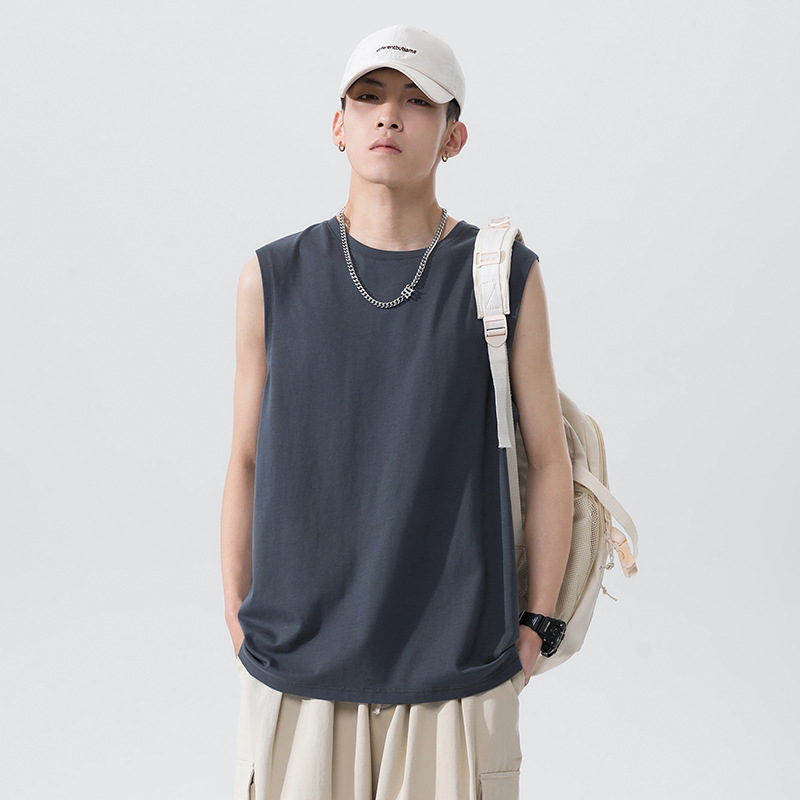 Главная страница > Мужская хлопковая майка на лето 2024, круглый вырез, однотонная, без рукавов, белая, модный и универсальный топ, трендовый корейский стиль.