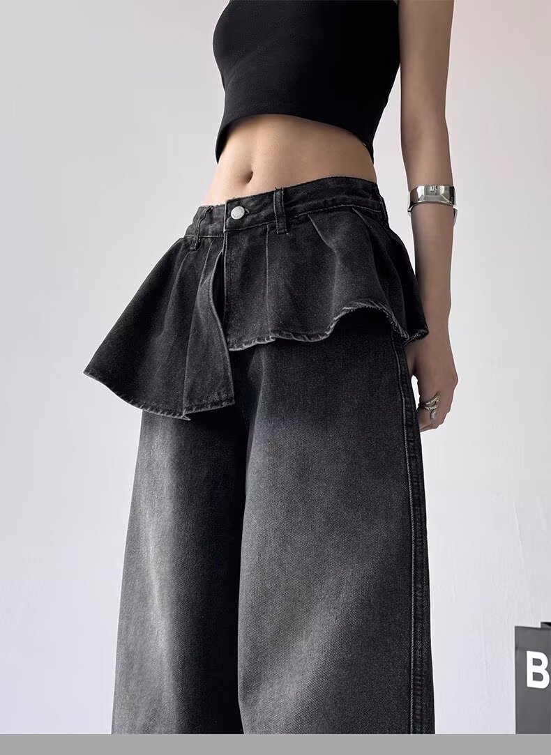 Главная страница > Уникальные женские джинсы из двух частей в винтажном стиле с лоскутным дизайном, универсальные расклешенные широкие брюки с модным дизайном.