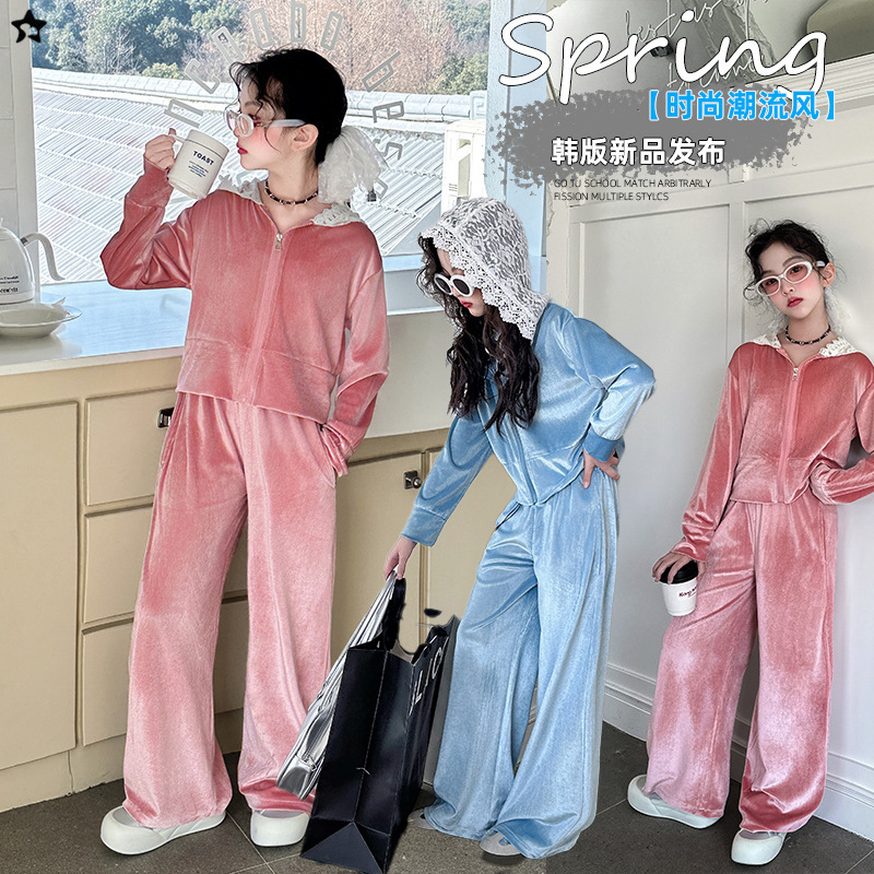 Весенний набор для девочек 2025 Новый большой мальчик великолепная вечеринка бархатный спортивный набор бархатная кружевная шляпа набор