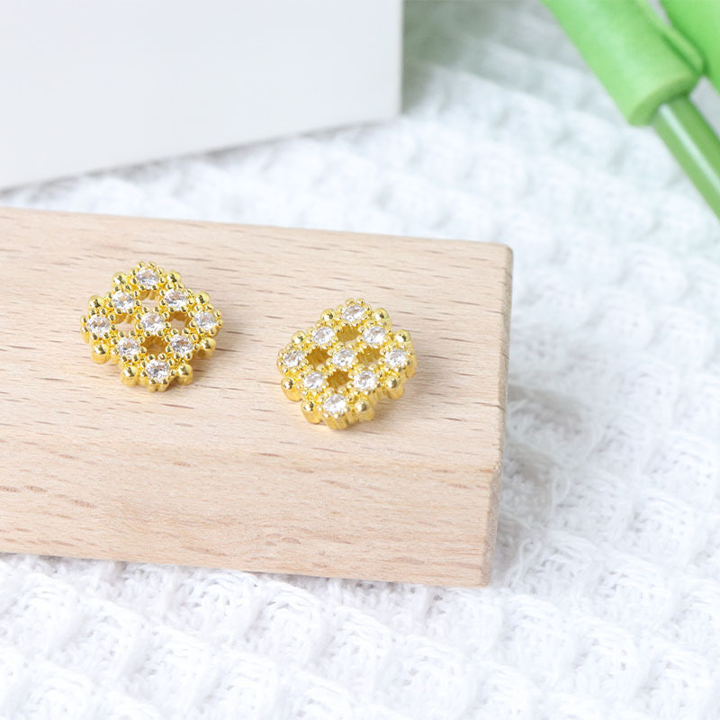 Микро-инкрустированный циркон гальваника 14K пакет золотой ажурной квадратной фурнитуры позолоченный полый цветочный подставка шапка-подставка DIY