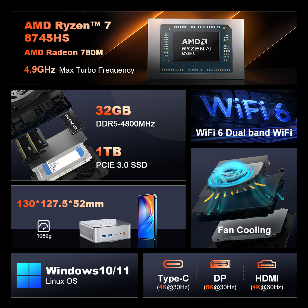 Главная страница > Новый AMD Ryzen ™ 7 8745HS мини-компьютер портативный настольный микро-маленький хост