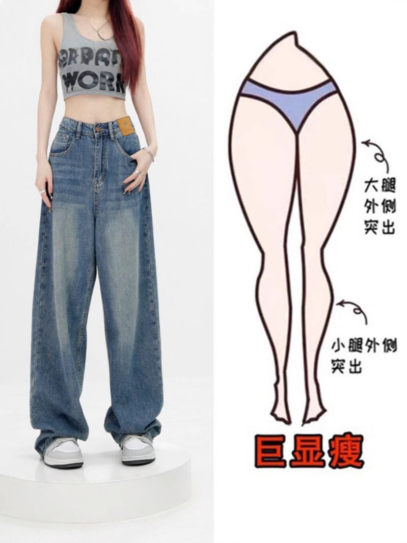 Главная страница > Широкие джинсы грушевидной формы для женщин больших размеров, новинка 2025 года, утягивающие прямые летние свободные брюки с высокой талией длиной до пола