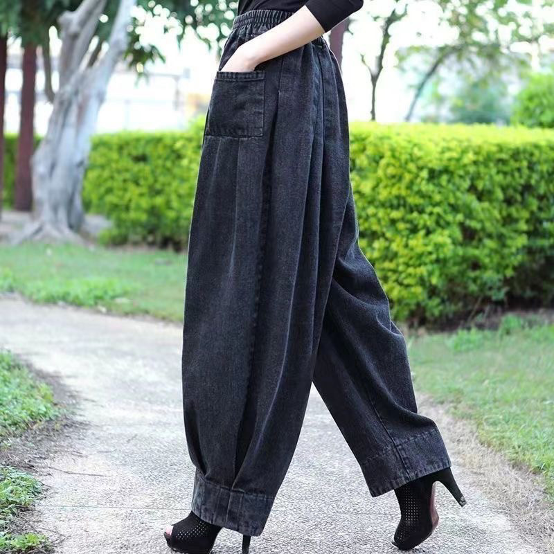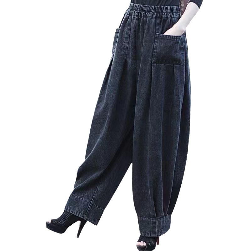 Главная страница > Толстая мама 2024 весна и осень женские джинсы шаровары широкие брюки свободные тощие большие размеры редьки повседневные брюки