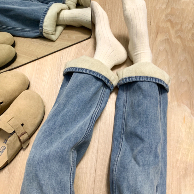 Главная страница > Плюс размер узкая версия прямых джинсов женская осень-зима плюс бархат 2024 новый толстый мм с высокой талией тонкая и широкая нога штанов