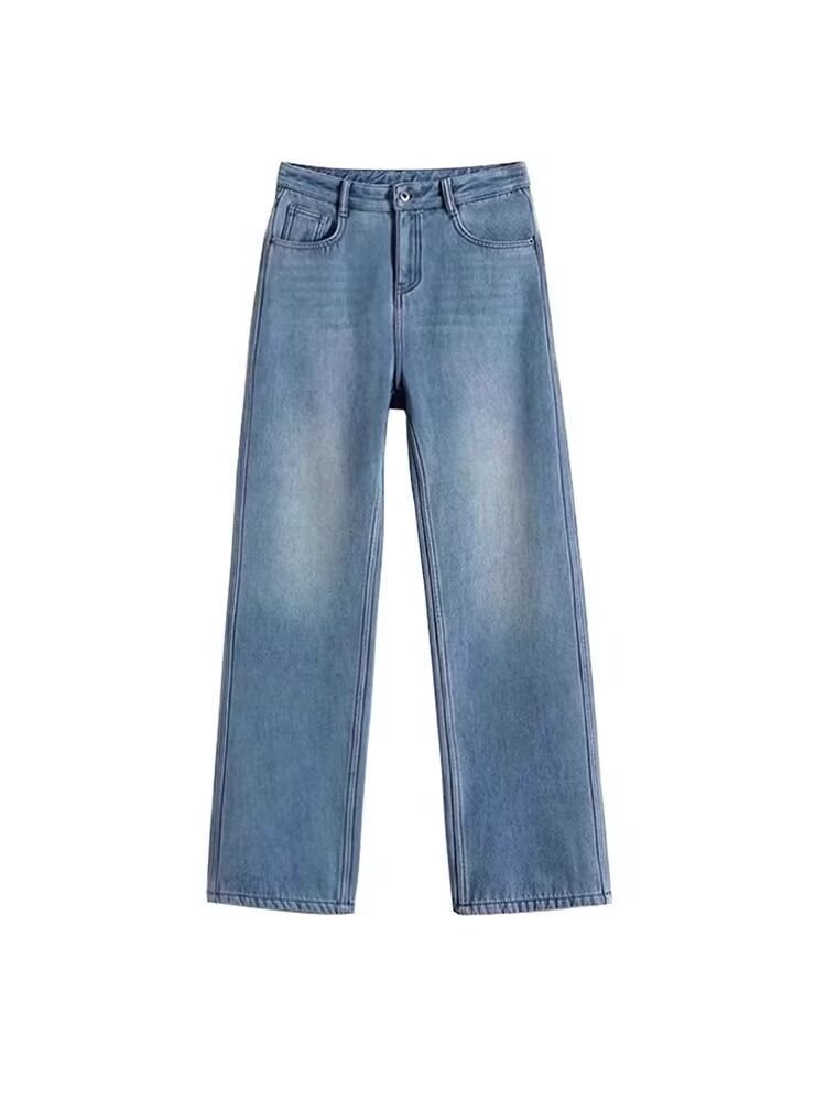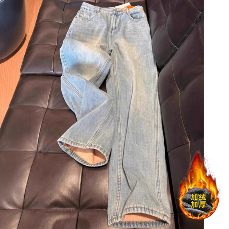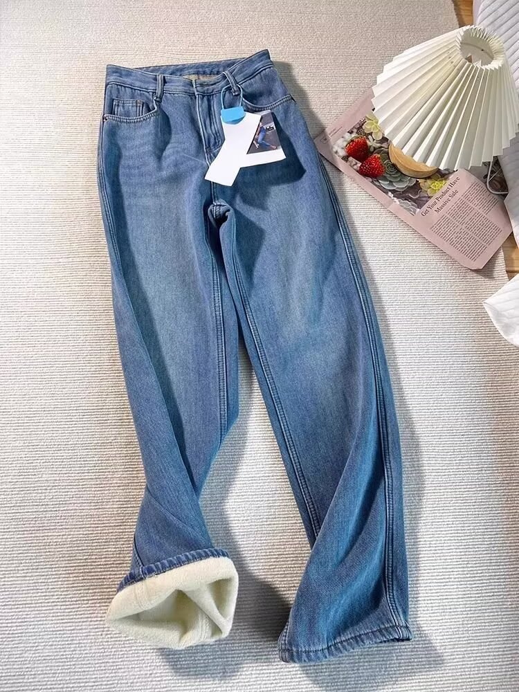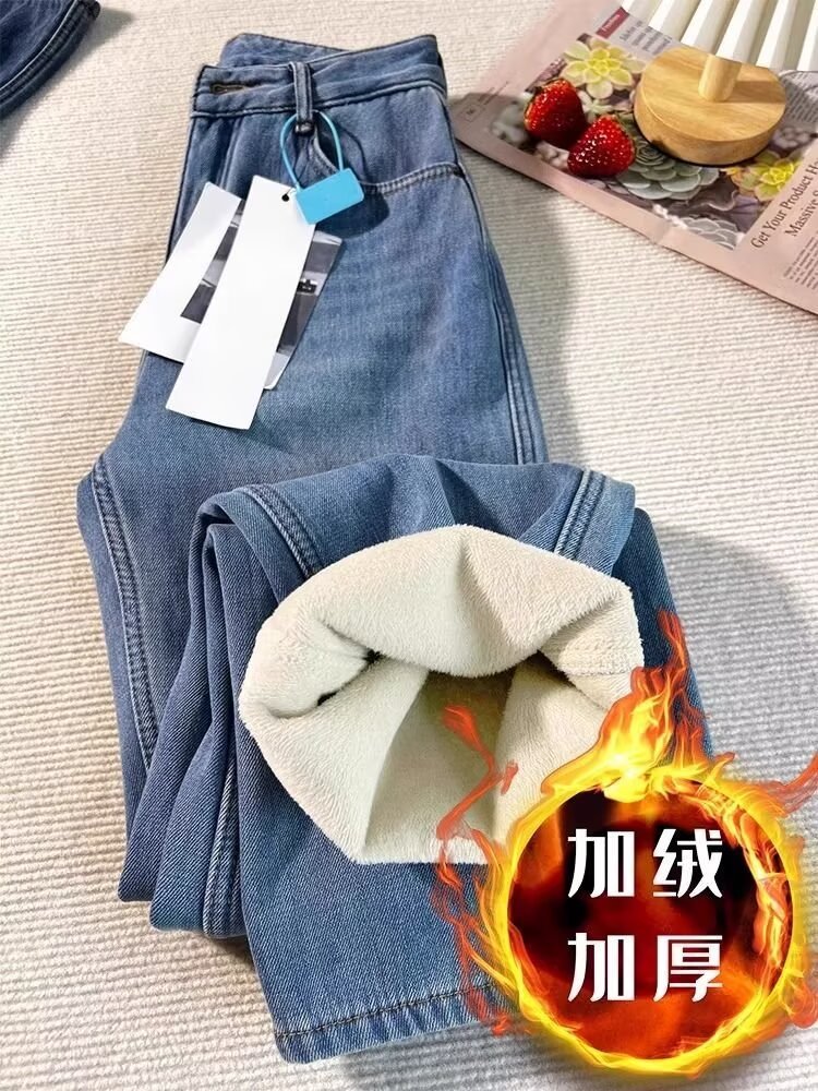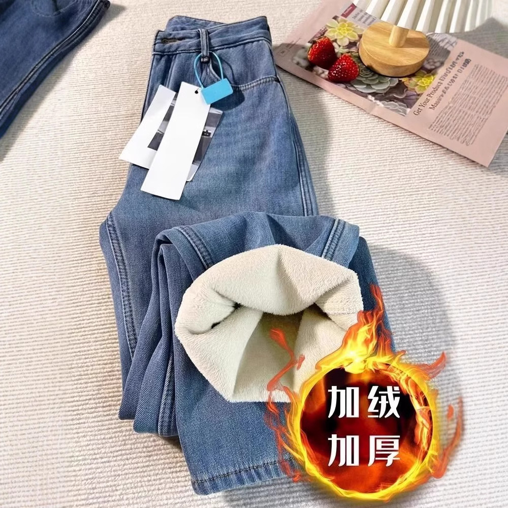 Главная страница > Корейская версия плюшевых прямых джинсов женский 2024 осень-зима новый большой размер с высокой талией и тонким покрывалом свободные широкие брюки