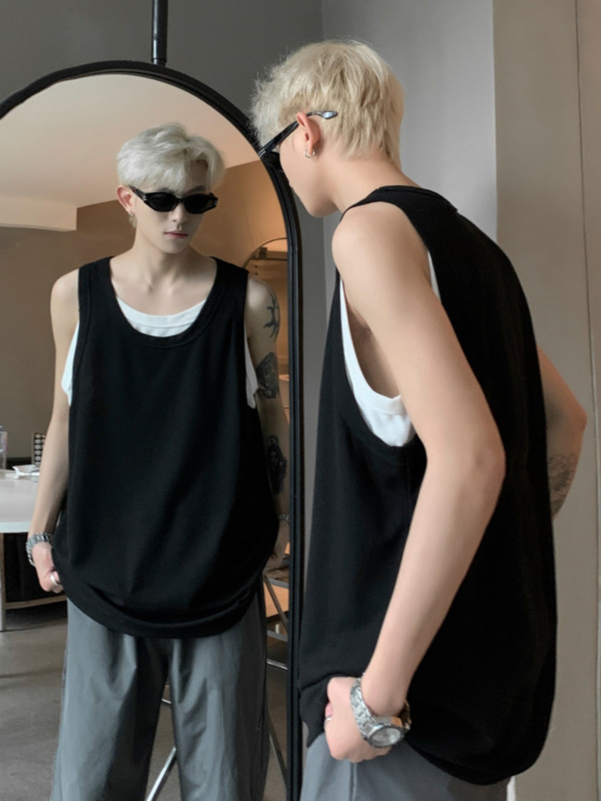 Главная страница > Американский поддельный жилет из двух частей мужской тренд летом тяжелая молодежная футболка без рукавов красивый спортивный плечо с короткими рукавами
