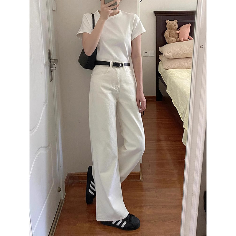 Белые плюшевые толстые джинсы женские зимние новые большие размеры толстый мм тонкая свободная высокая талия висяга широкие брюки