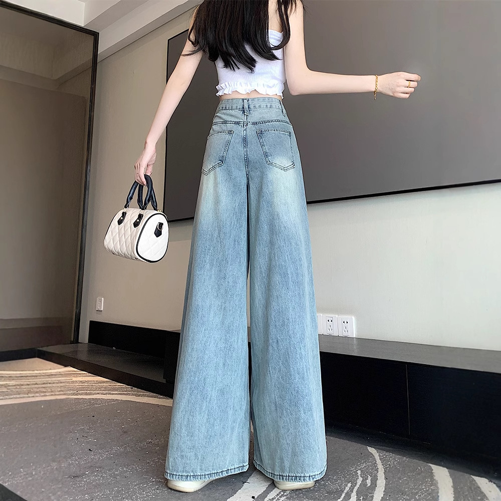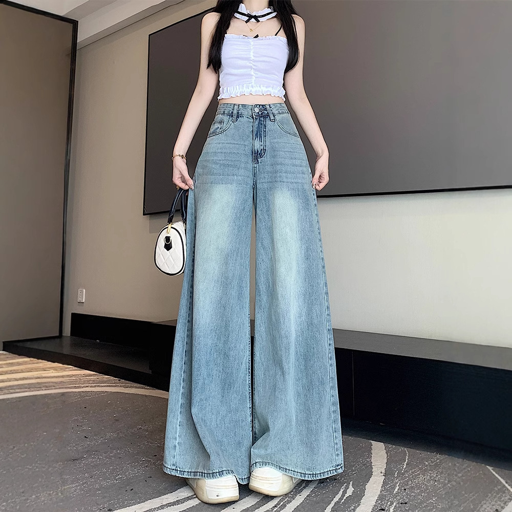 Главная страница > Большие размеры свободные широкие ножки джинсы женские лето 2025 Тонкие вертикальные прямые брюки с высокой талией тонкие и длинные швабры