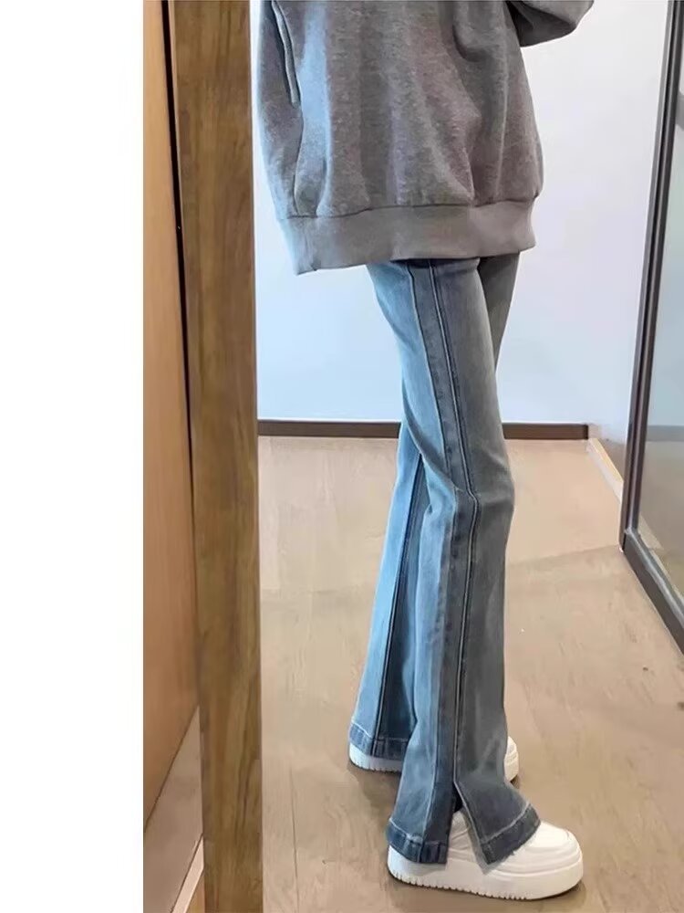 Главная страница > Раскрошенные джинсы микролы ретро-джинсы 2025 новый большой размер с высокой талией и подвеской тонкая ретро ins модные расклешенные брюки