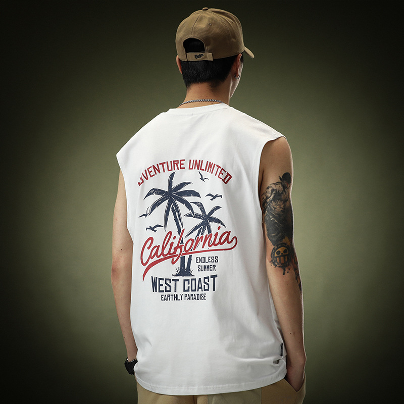 Главная страница > Тяжелый жилет без рукавов 230 г, мужской летний Свободный жилет с коротким рукавом, спортивный фитнес, баскетбол, модная брендовая футболка