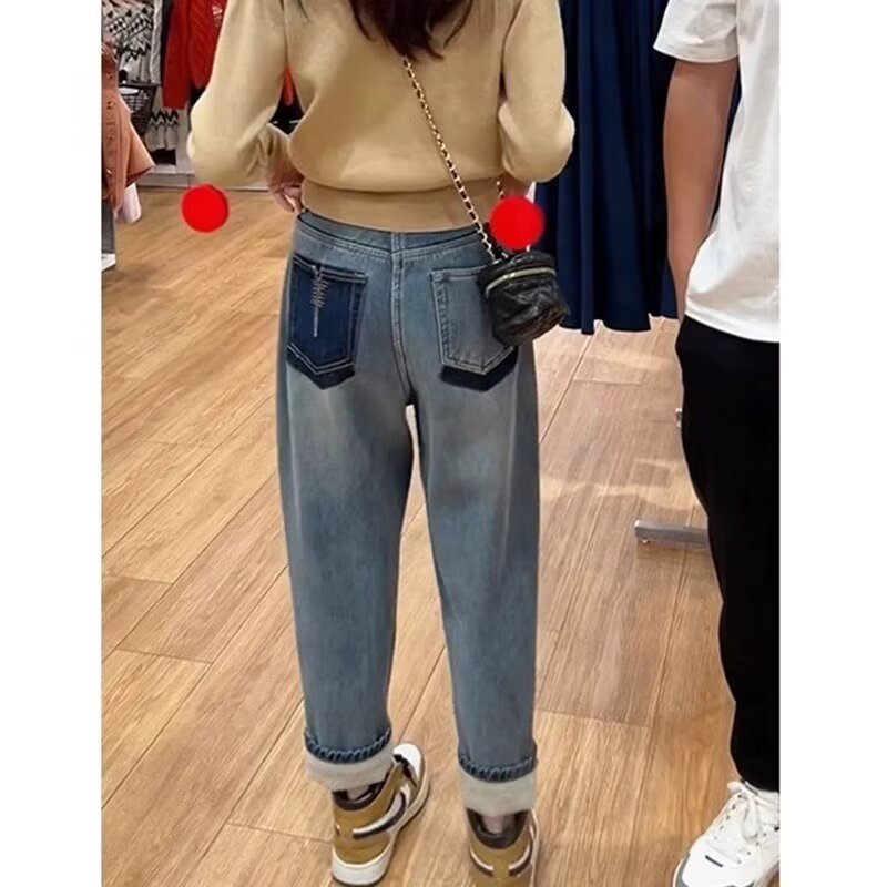 Главная страница > Haaren Джинсы Женская зимняя бархатная грушевидная фигура большой размер толстый мм высокая талия свободная тонкая папочка редька брюки