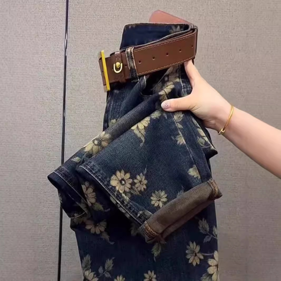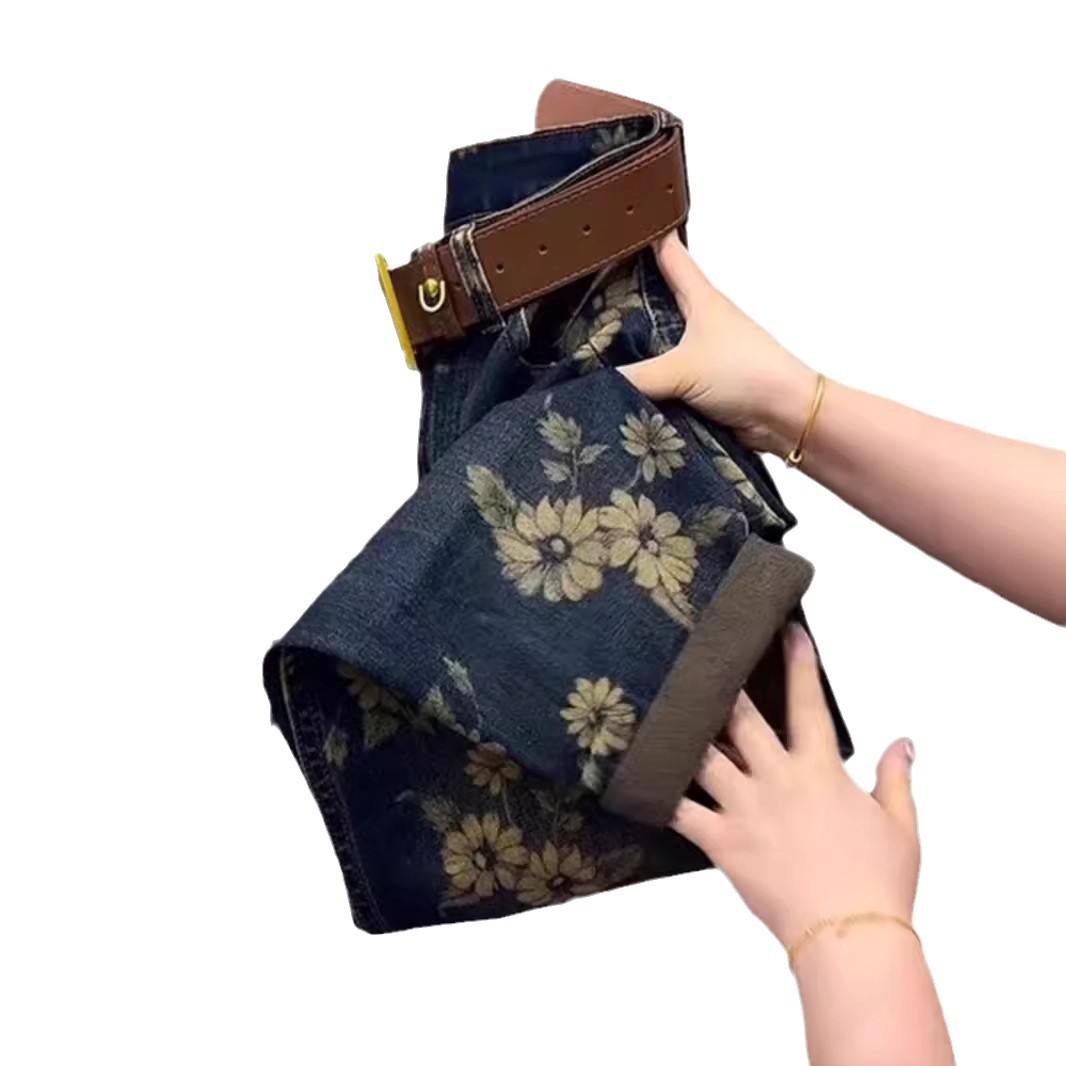 Главная страница > Американский дизайн джинсы с принтом женские осенние и зимние большие размеры Harlen свободные эластичные маленькие прямые штаны папы