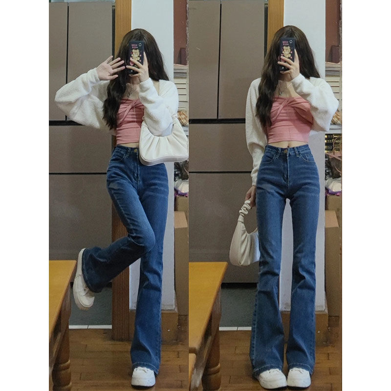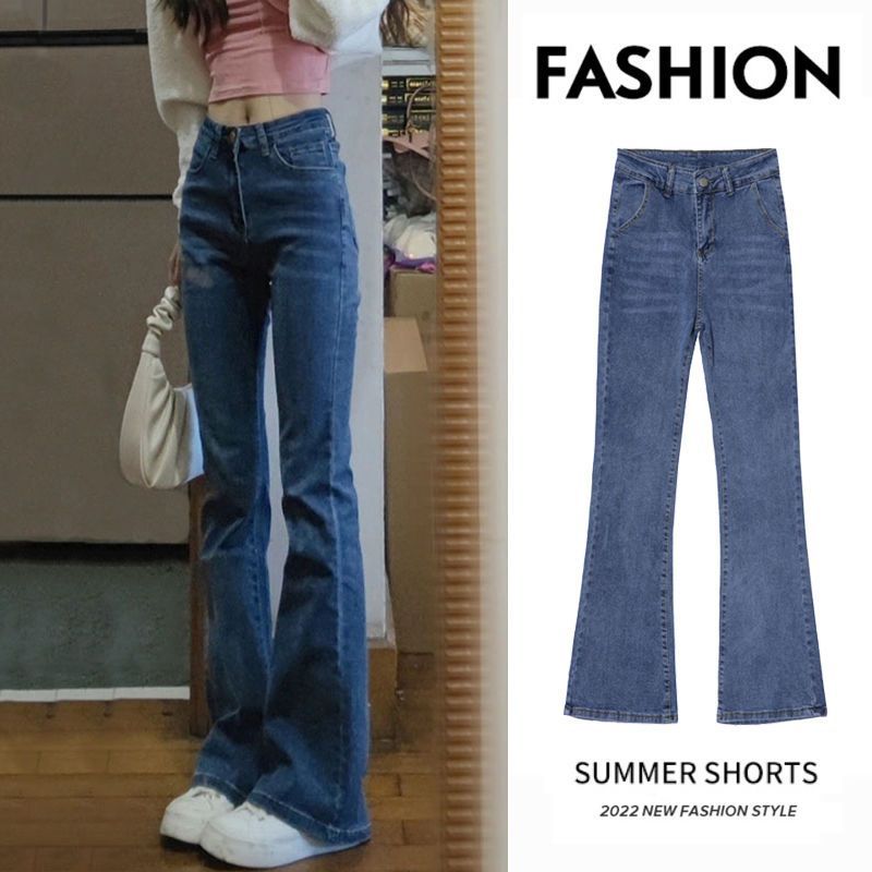 Главная страница > Женские джинсы большого размера с высокой талией и широкими штанинами, новинка 2022 года, универсальные облегающие узкие брюки с микро-расклешенными брюками, весна-осень