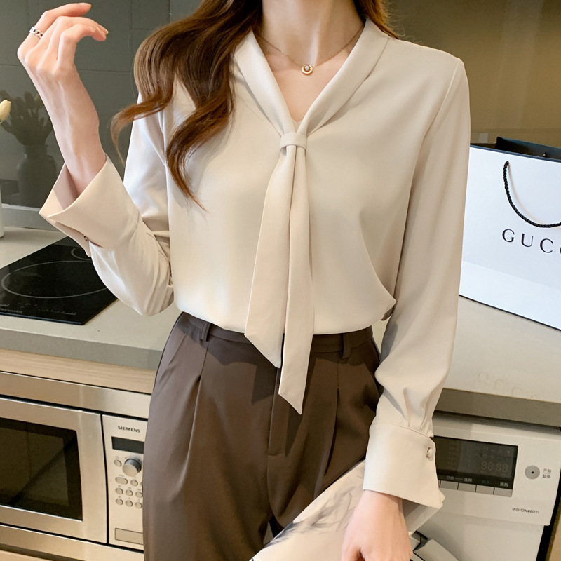 Главная страница > Новый топ женский сплошной шифон рубашка с V-образным вырезом с длинными рукавами Женская рубашка