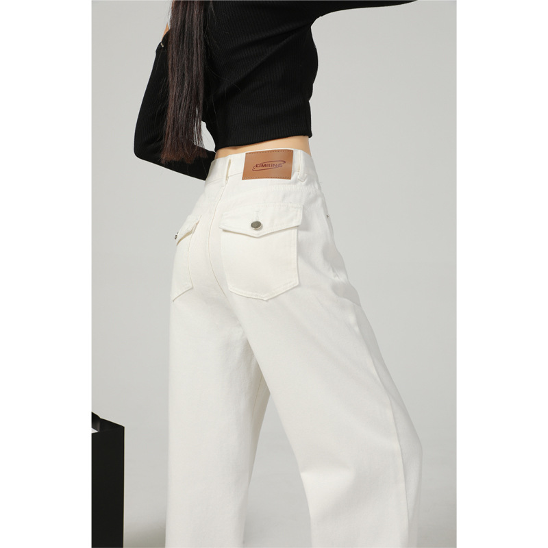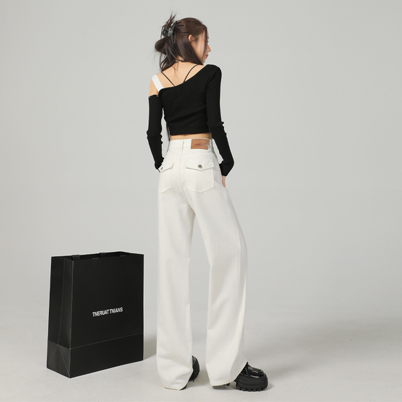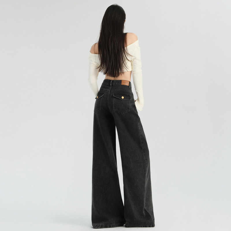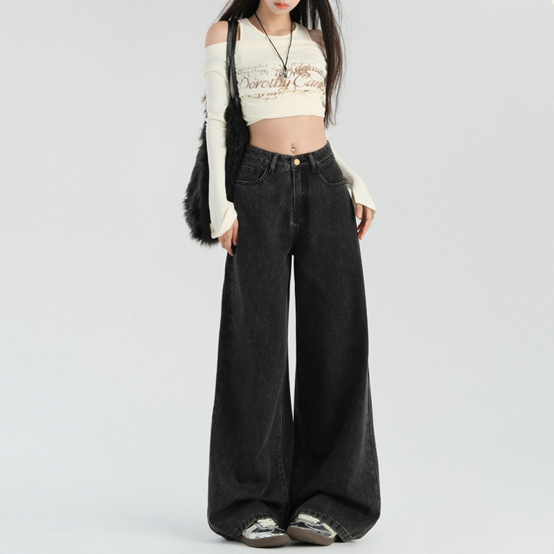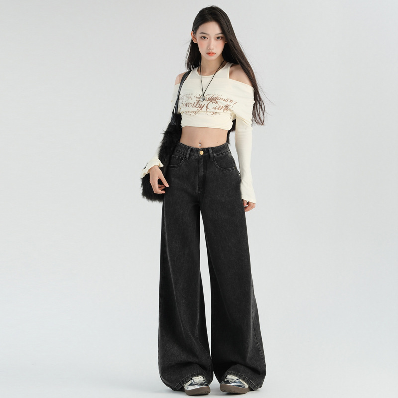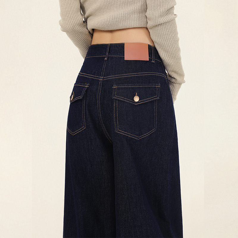 Главная страница > Темно-синие широкие джинсы для женщин, весна 2025, американский ретро-стиль, низкая талия, утягивающие, свободные, драпированные, в пол.
