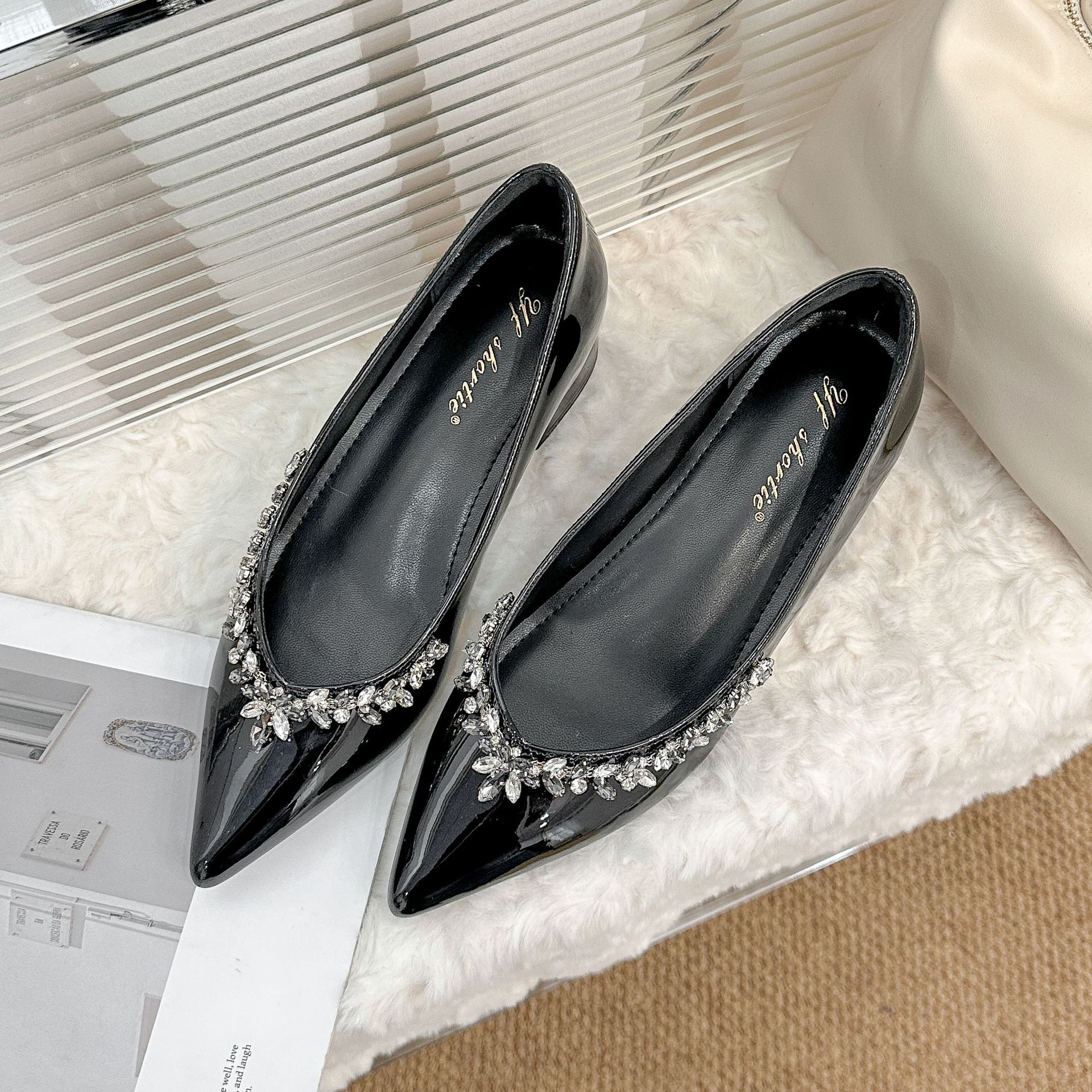 Главная страница > Женские туфли на блочном каблуке с острым носком и стразами, увеличивающие рост, 6cm г., новый стиль 2025, элегантные, не утомляющие, лакированные кожаные туфли на высоком каблуке