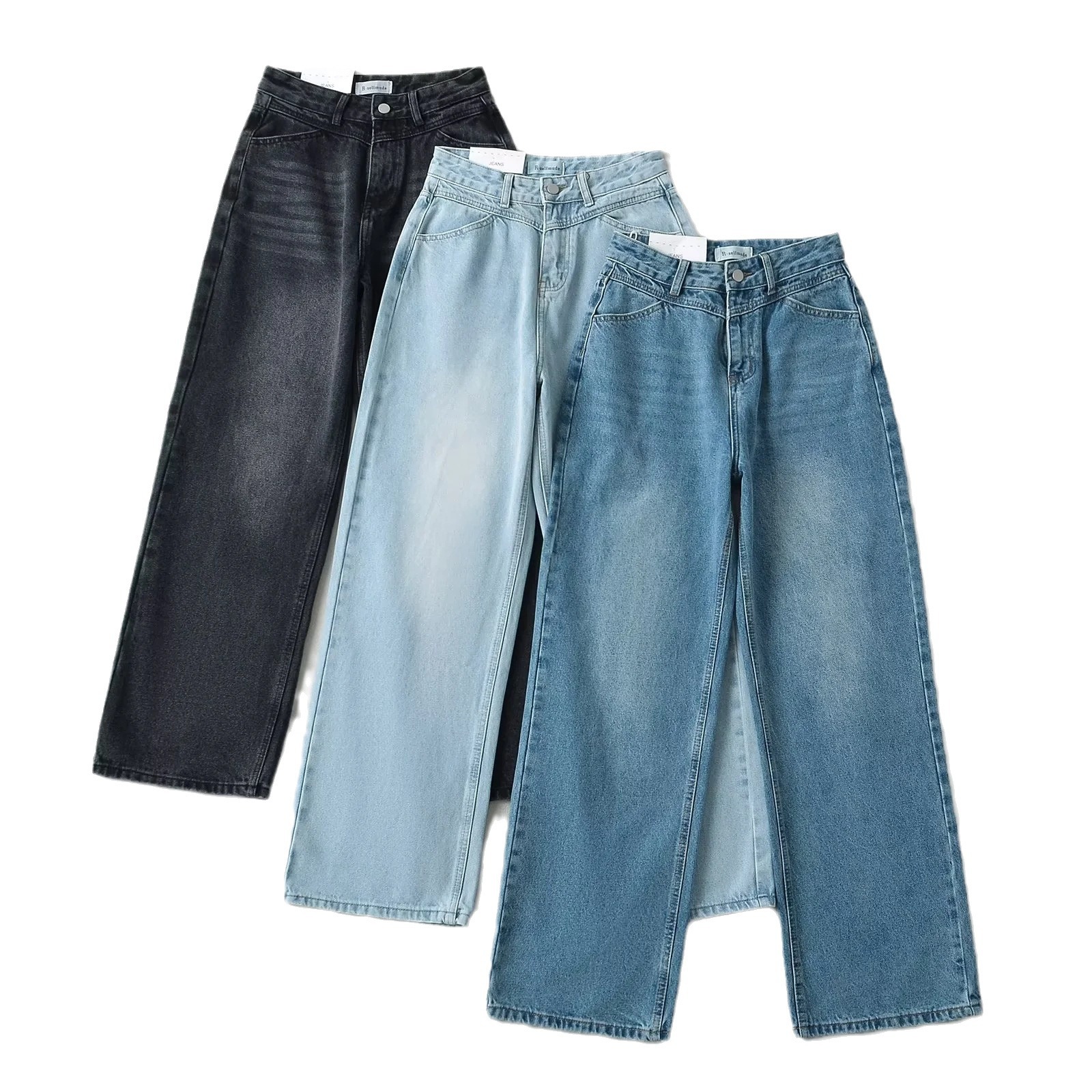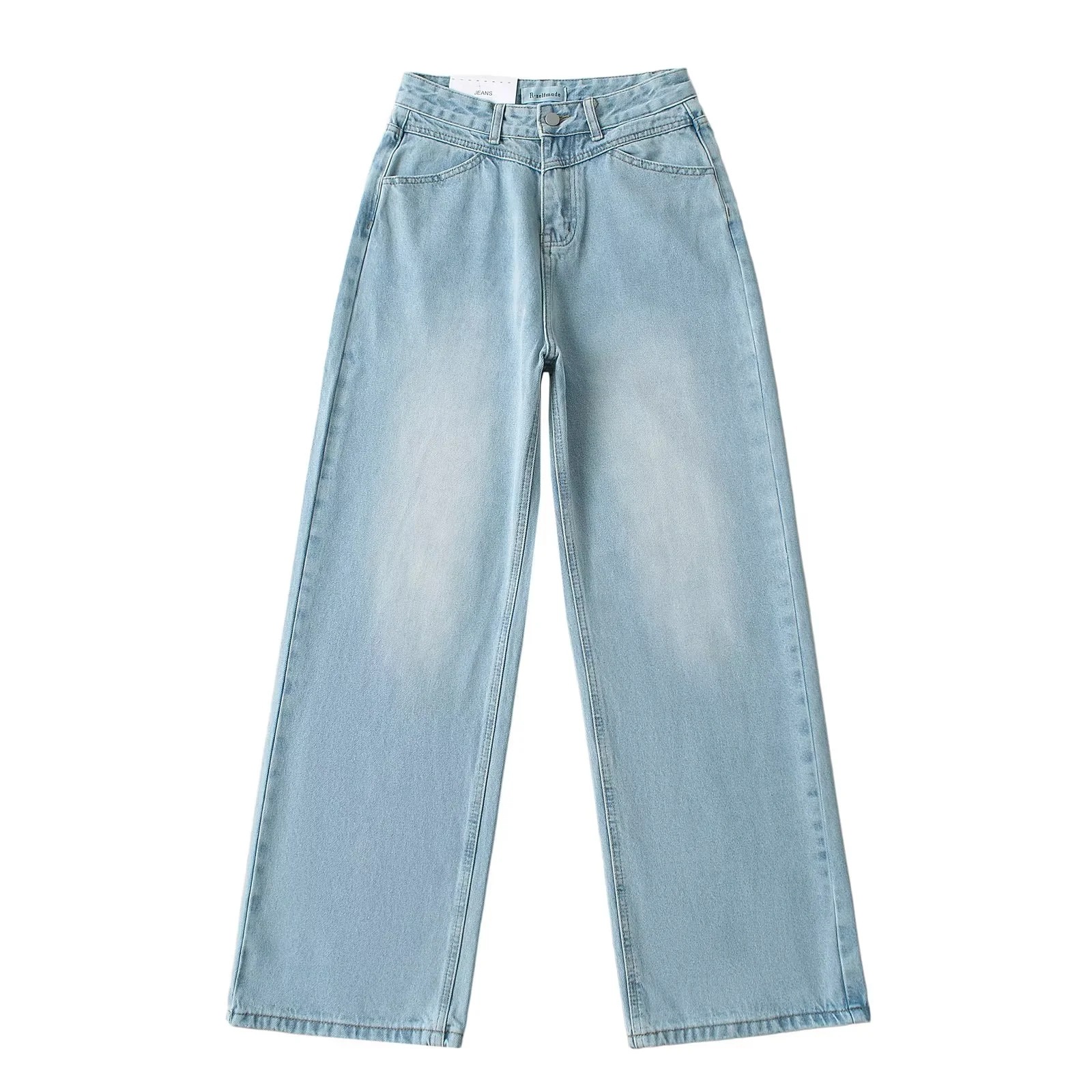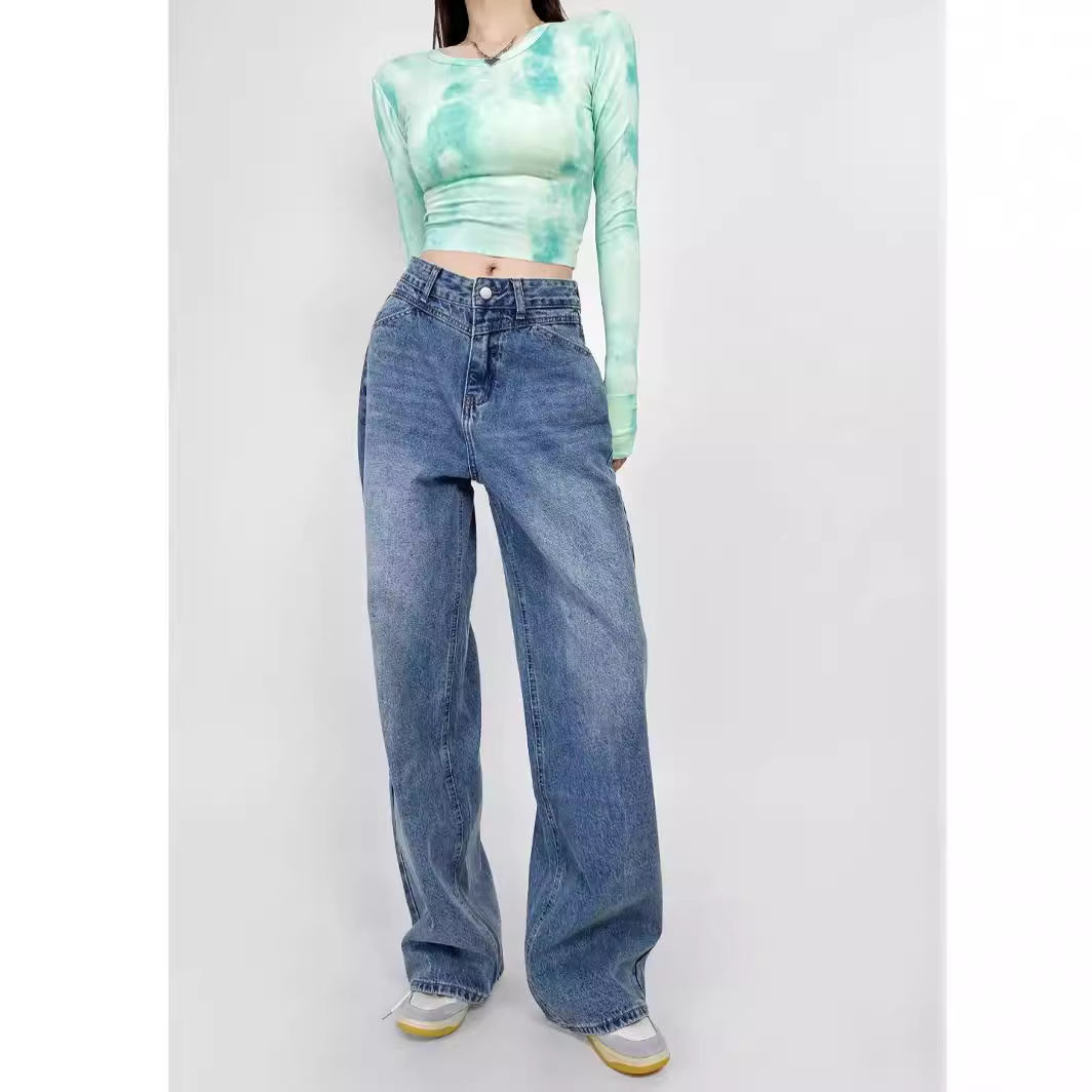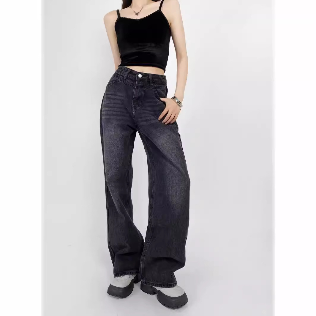 Главная страница > Американский ретро стирание джинсы женский 2024 летний новый стиль INS ленивый белый свободные длинные широкие брюки с высокой талией
