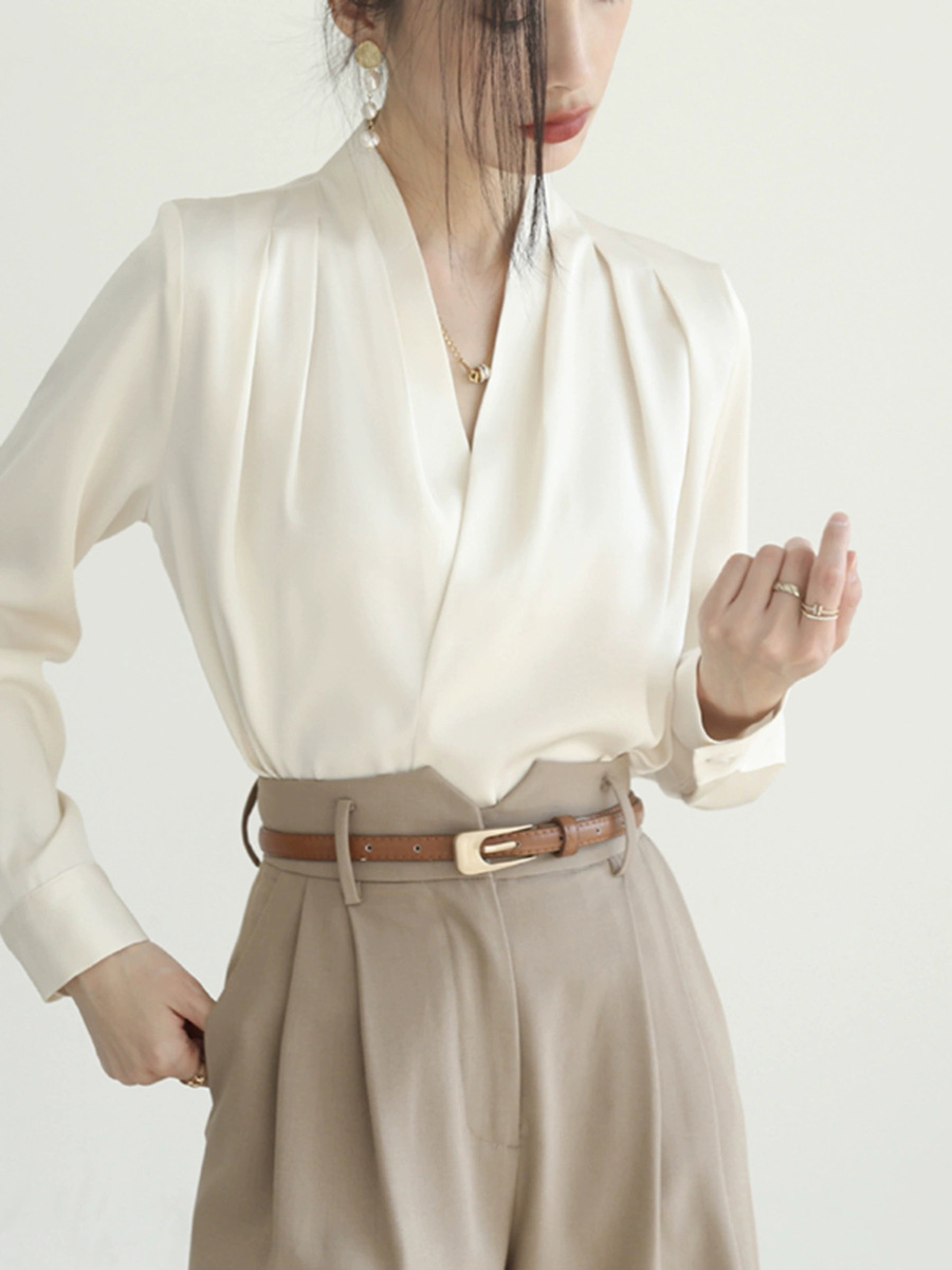 Главная страница > CS167B-рубашка большой размер женская толстая мм свободная корейская версия с длинным рукавом шифоновая V-образная рубашка профессиональная нижняя рубашка