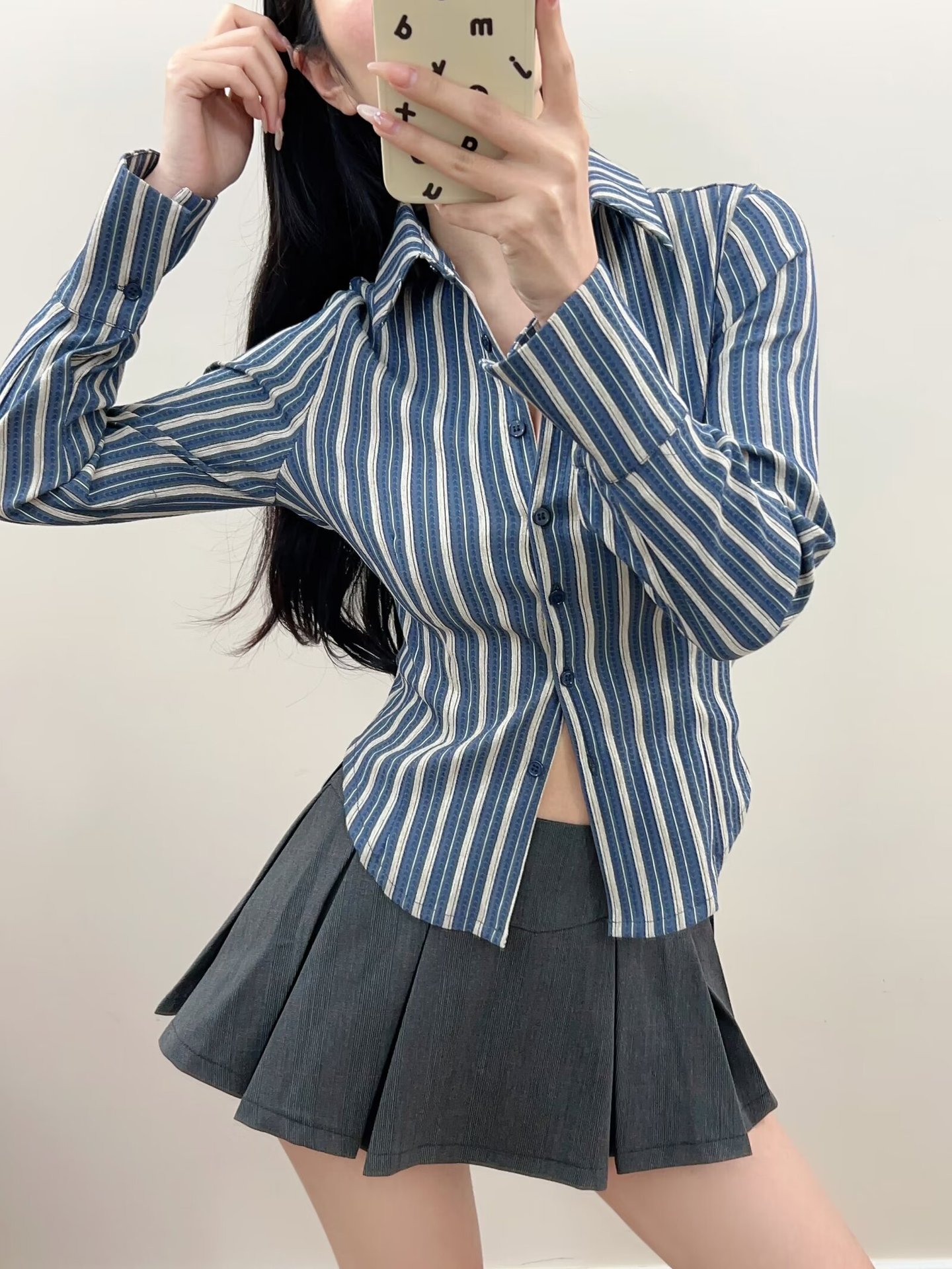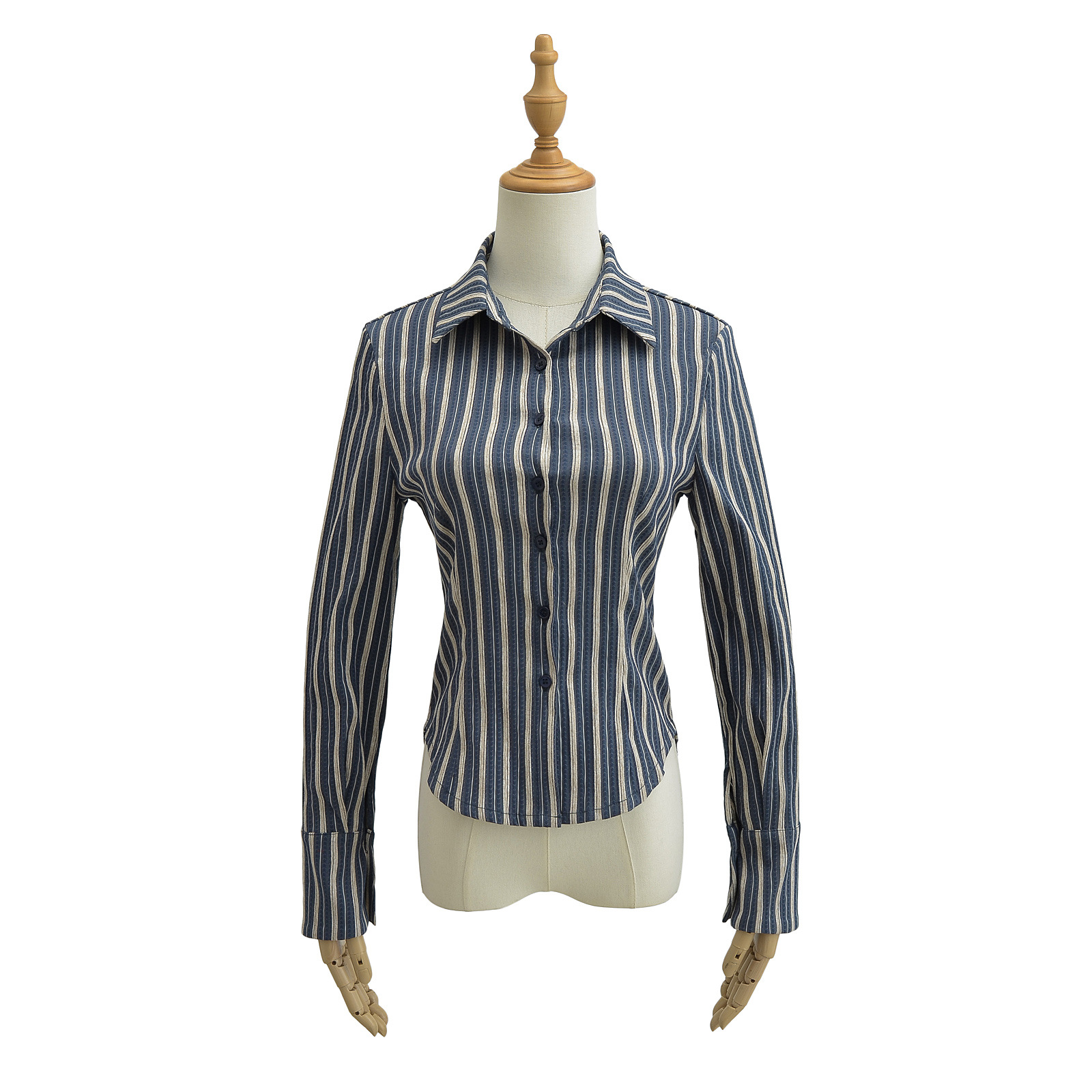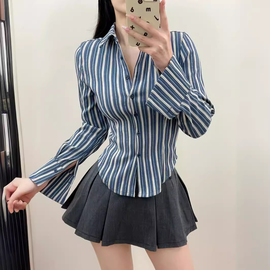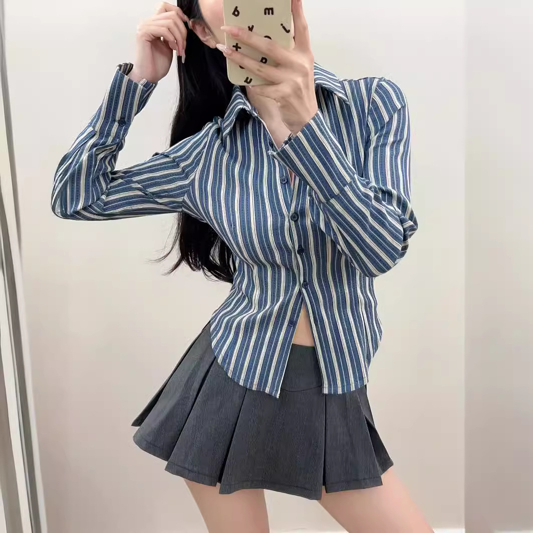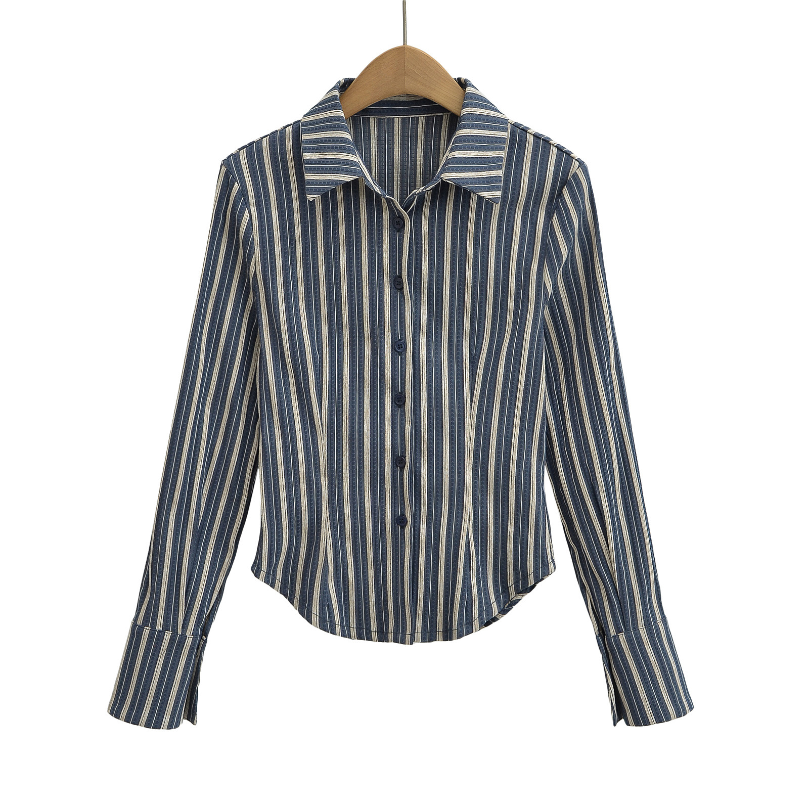 Главная страница > Дизайн в полоску с длинными рукавами рубашка женская 2024 новая модель колледжа горячая девушка с лацканом
