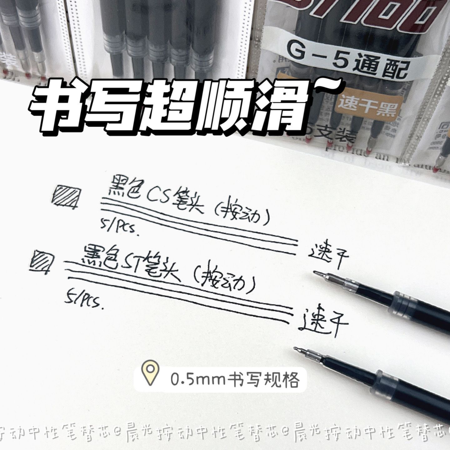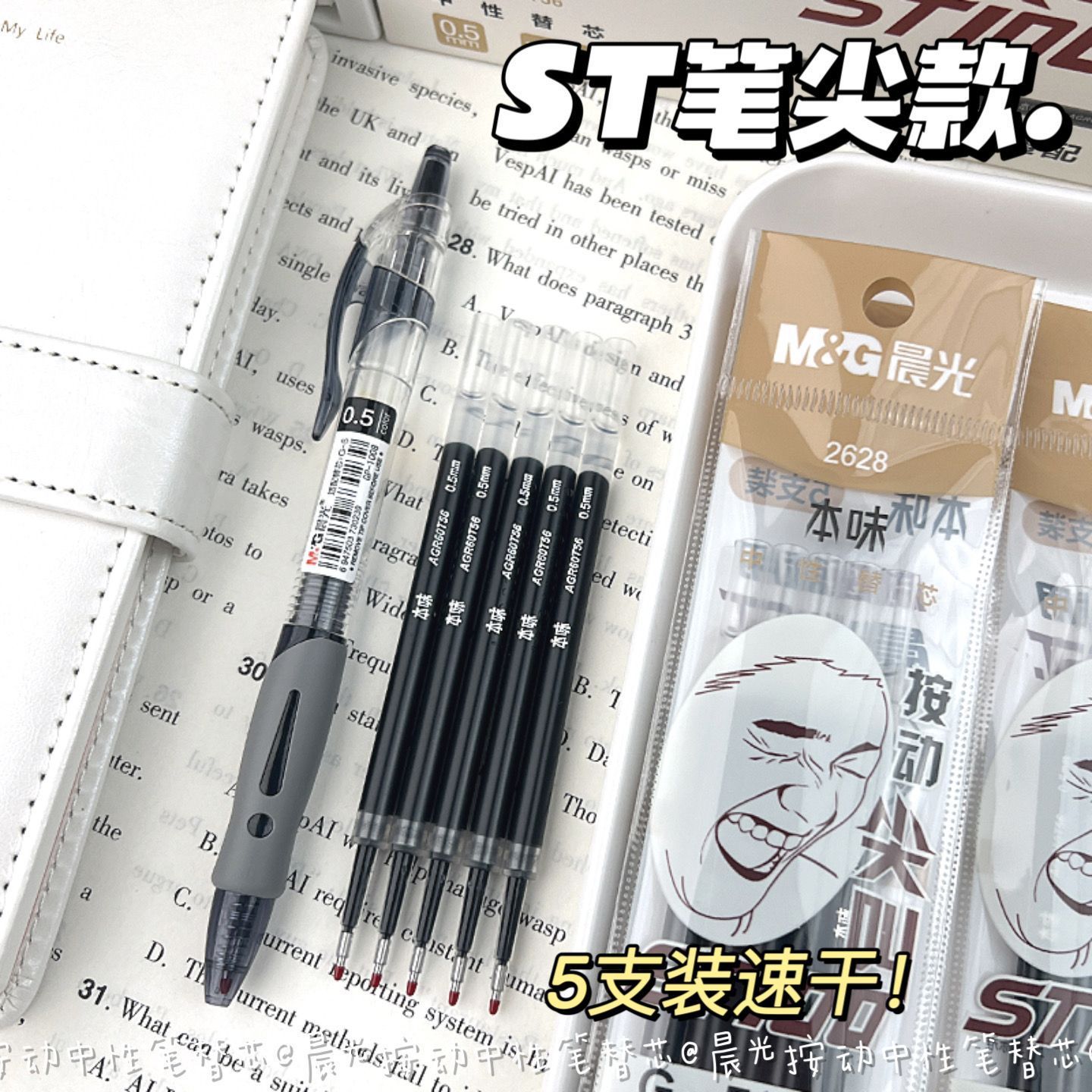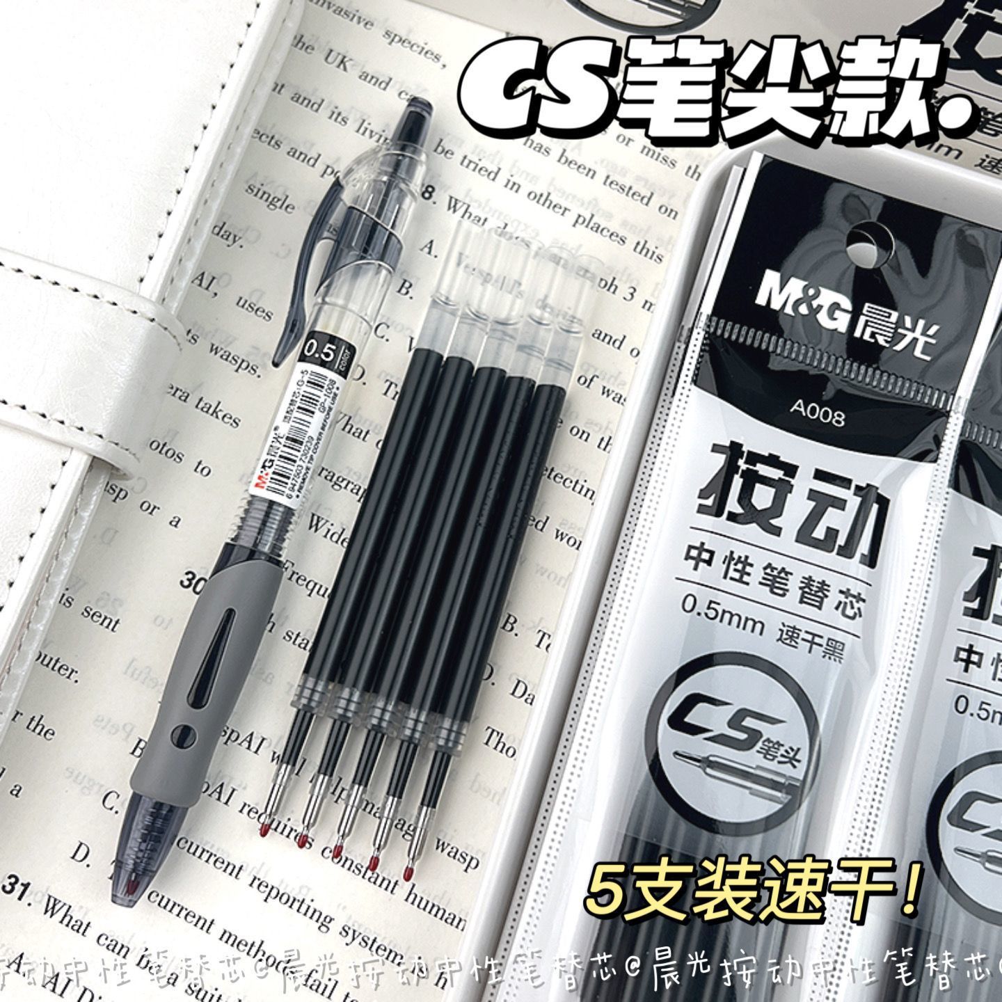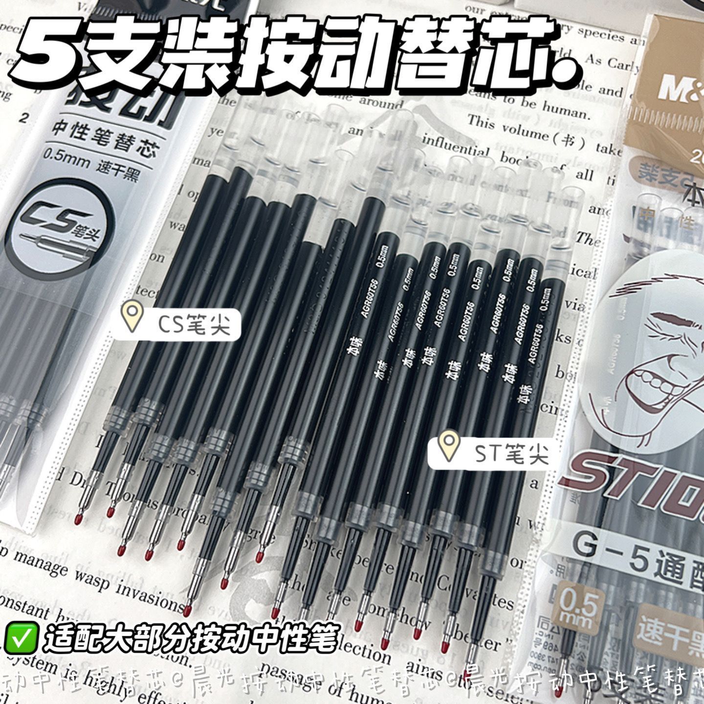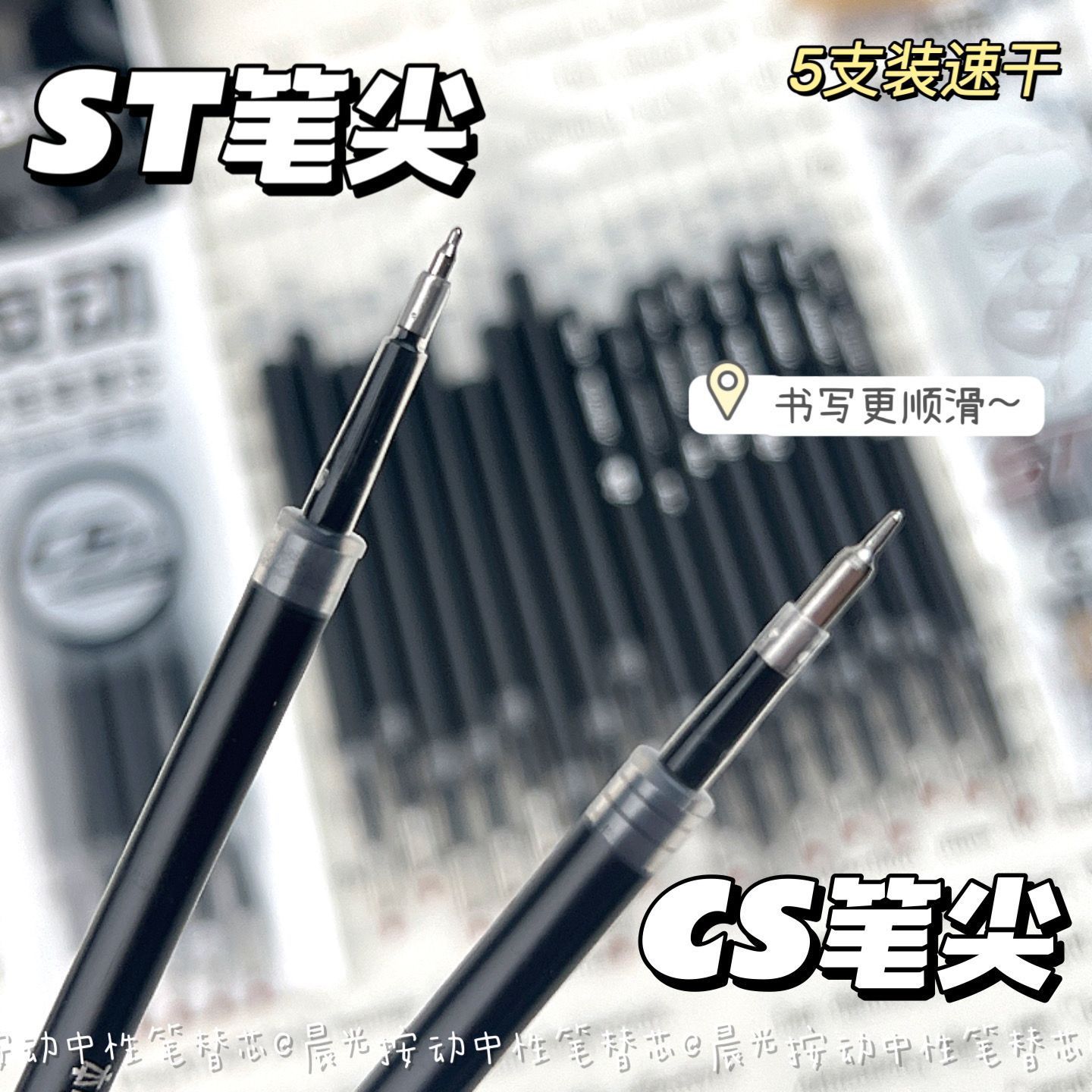 Запасной стержень для выдвижной ручки Morning Light ST, черный, 0,5, выдвижной стержень для экзаменационной ручки, наконечник CS, быстросохнущая гелевая ручка, черная ручка.
