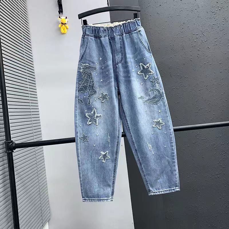 Главная страница > Летние тонкие повседневные женские брюки с вышивкой Гипсофилы больших размеров в Корейском стиле ретро тонкие джинсы Harlan Turnip Pants