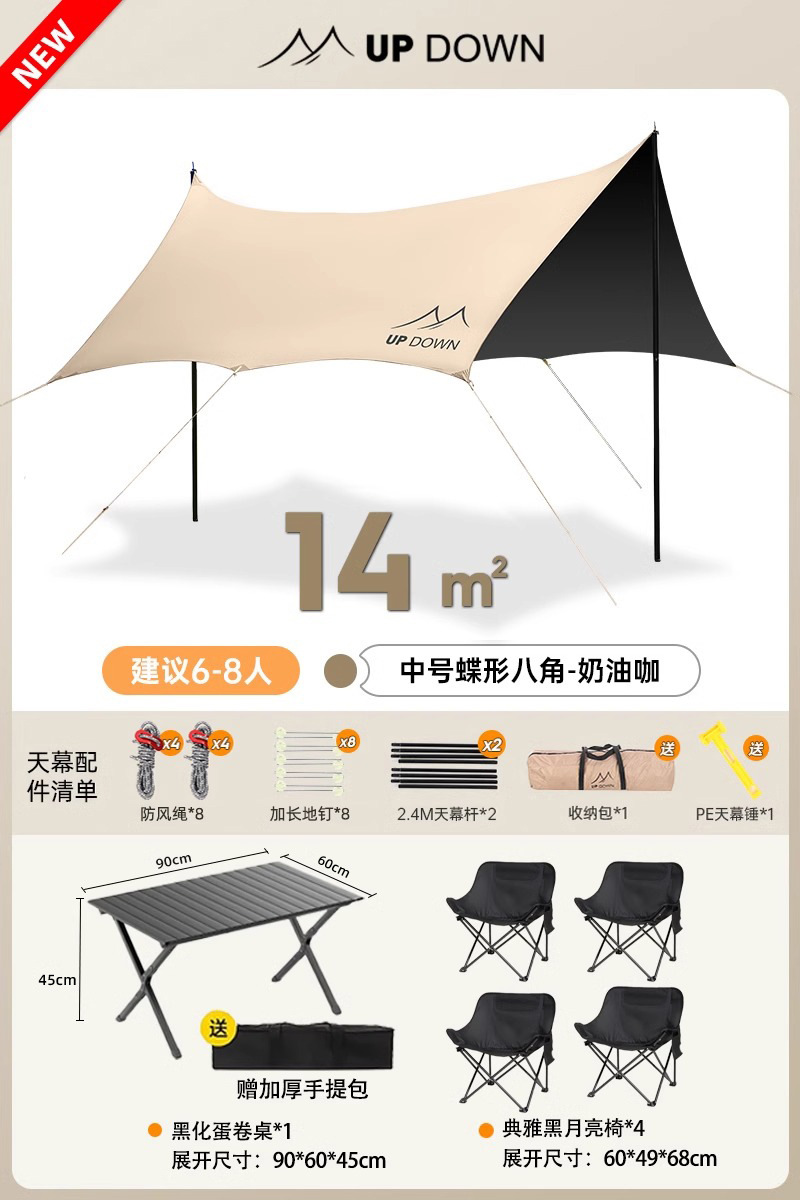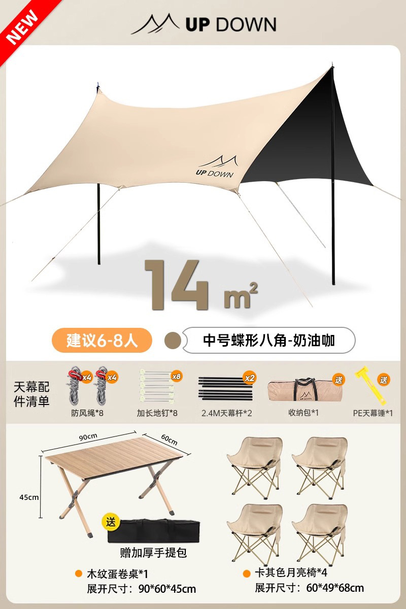14 ㎡ Кофе [восьмиугольная виниловая бабочка + защита от солнца, водонепроницаемость и ветрозащита] среднего размера/шест 2,4 м/рекомендуется для 6-8 человек