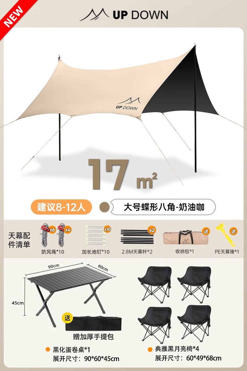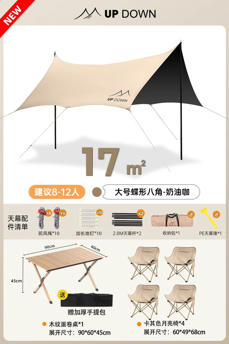 Главная страница > Updown виниловая палатка на открытом воздухе полный комплект кемпинга с большим солнцезащитным покрытием для пикника дождевой навес