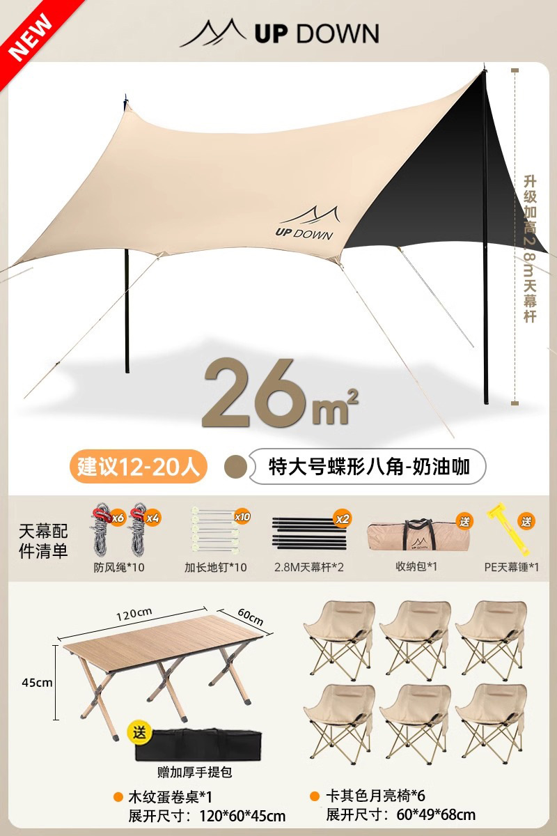 26㎡Кофе [2,8 м в полной комплектации + утолщенный навес + 6 слоев утолщения + защита от ультрафиолета] очень большой / рекомендуется для 12-20 человек