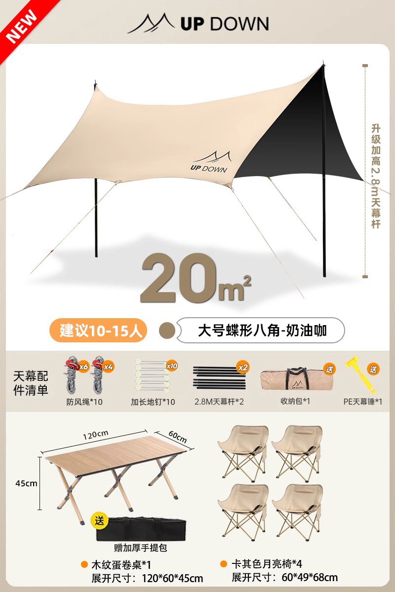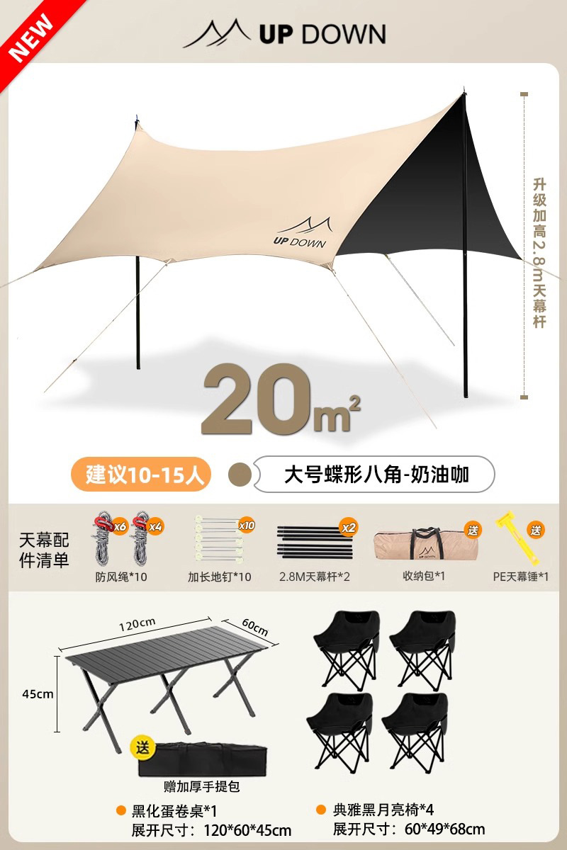 Updown виниловая палатка на открытом воздухе полный комплект кемпинга с большим солнцезащитным покрытием для пикника дождевой навес