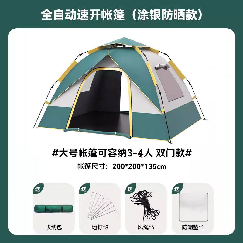 Автоматическая двустворчатая дверь 3/4 человека темно-зеленого цвета + влагостойкий коврик + коврик для пикника