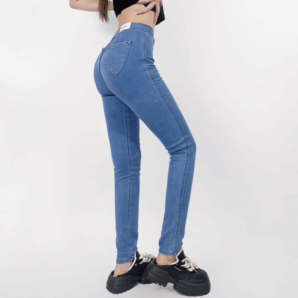 Главная страница > Оптовая продажа горячая девушка весна новая высокая талия 2 пряжки эластичные стройные джинсы женские сердца карман карандаши брюки