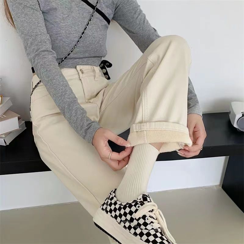 Главная страница > Нежно-белые бархатные джинсы женский зимний новый трансграничный дикий тонкий и эластический черный прямой брюки корейская версия
