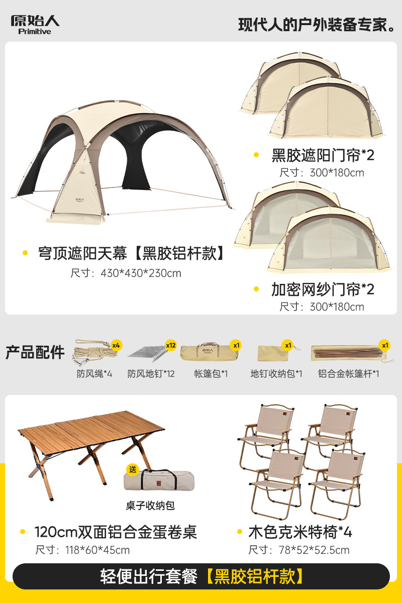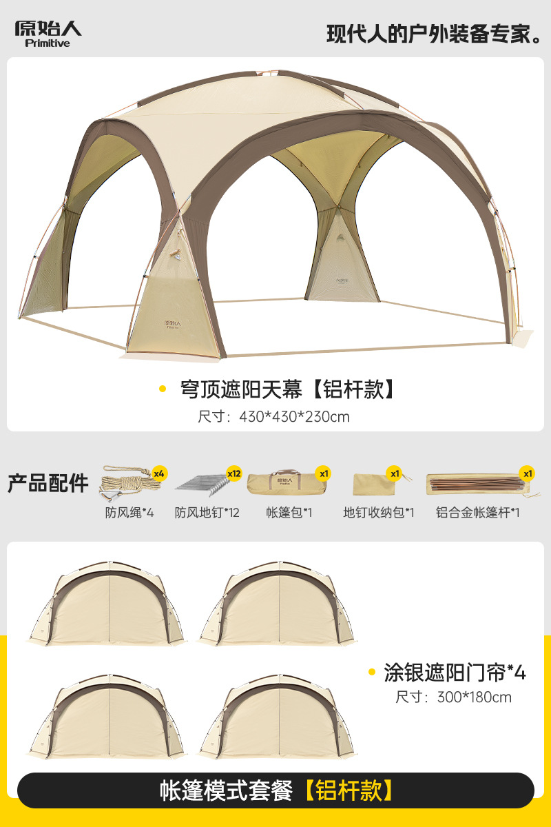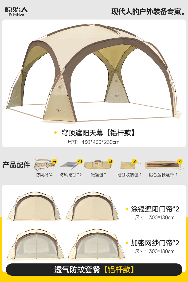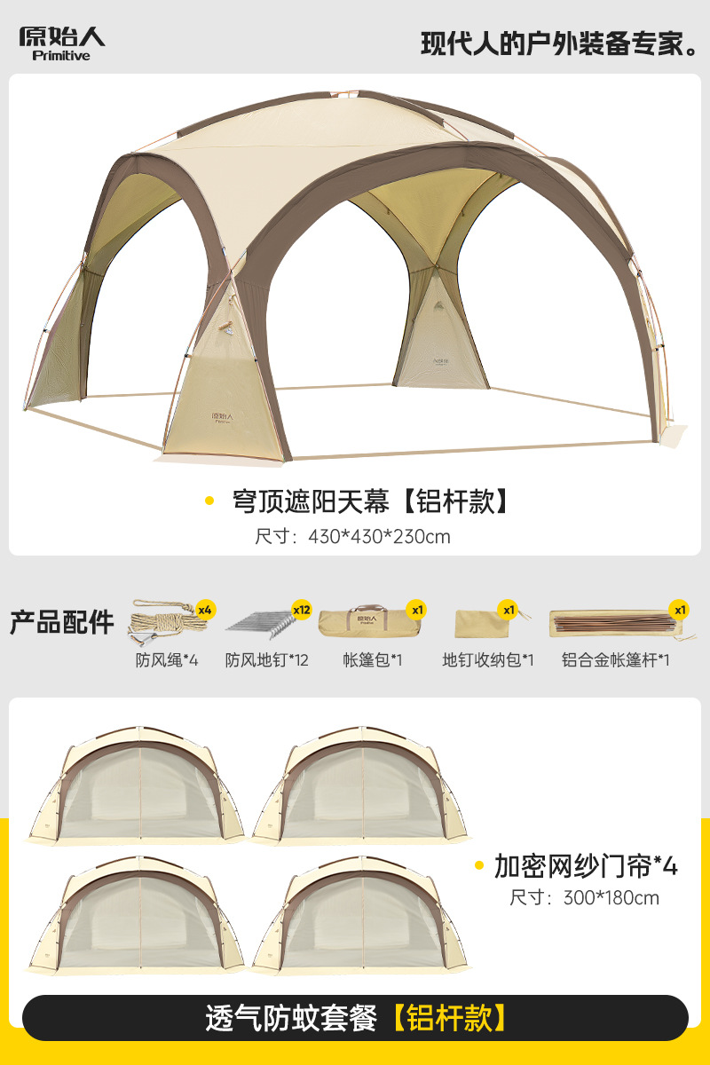 Модель третьего поколения с модернизированным жирным черным пластиковым алюминиевым столбом, отдельно стоящая и простая в сборке [цвет туманного песка] «18,5㎡Большое пространство» [вмещает 8-16 человек]