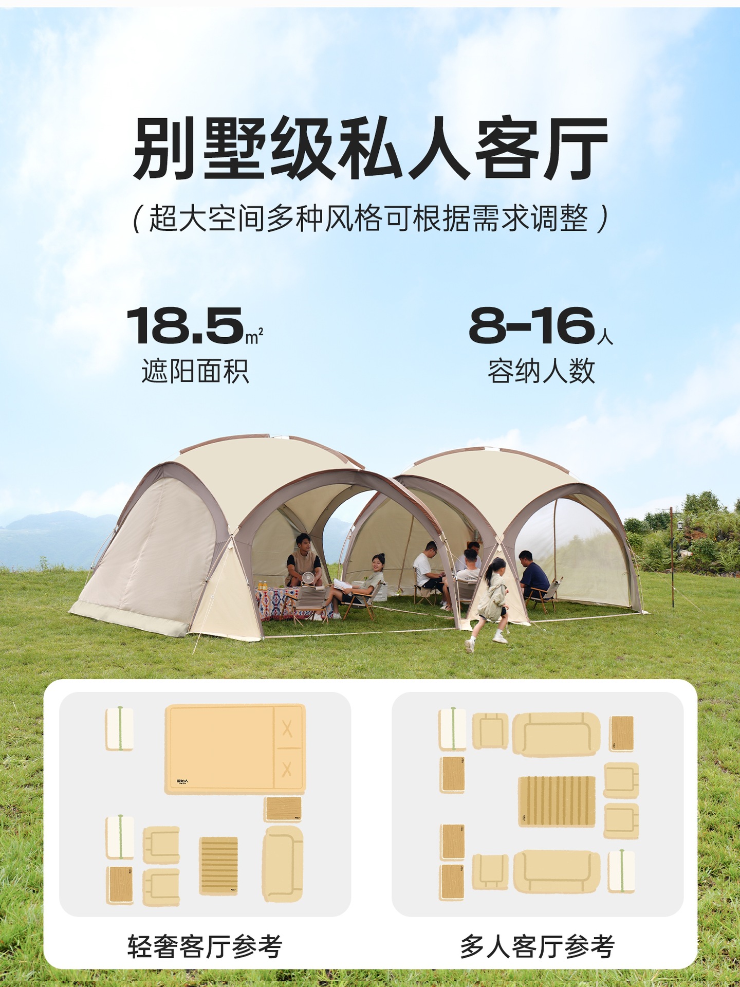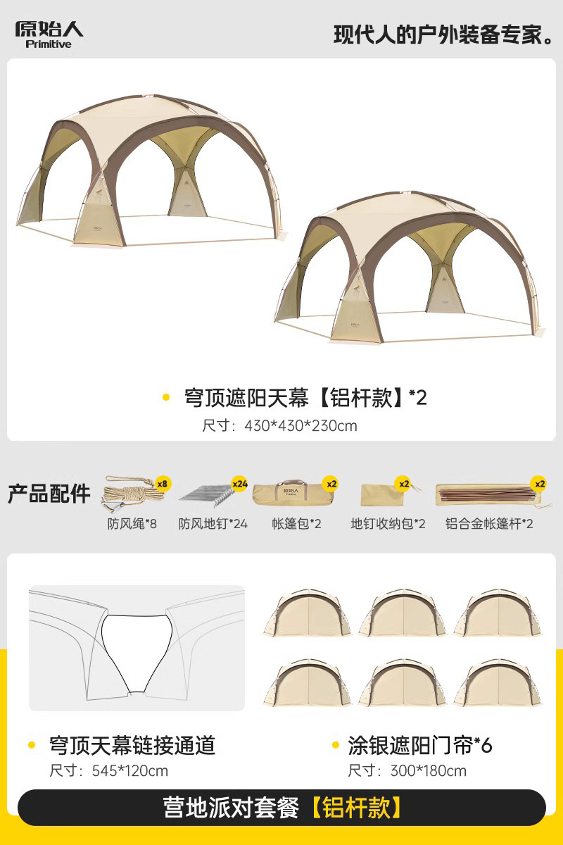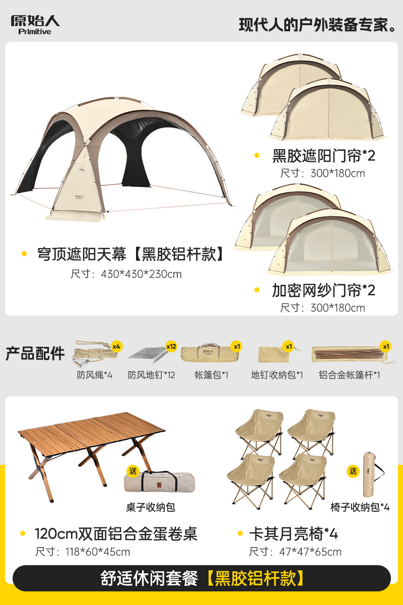 Модель третьего поколения с модернизированным жирным черным пластиковым алюминиевым столбом, отдельно стоящая и простая в сборке [цвет туманного песка] «18,5㎡Большое пространство» [вмещает 8-16 человек]