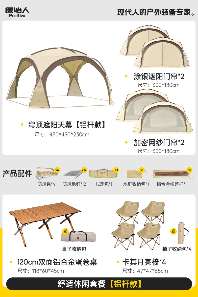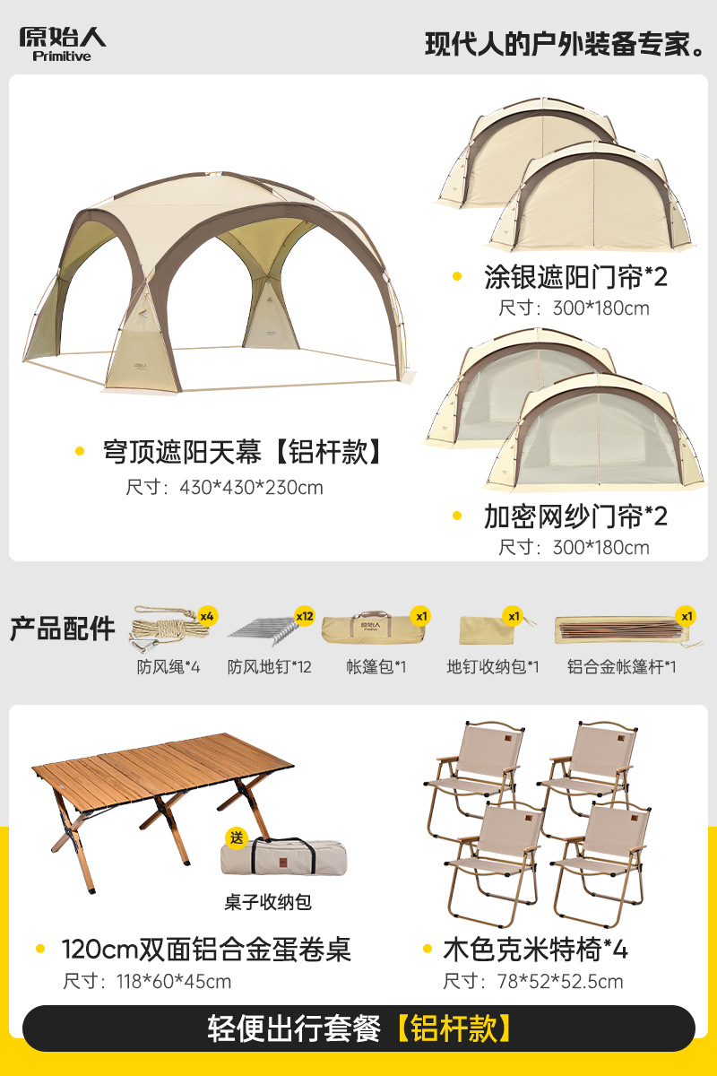 Винил - купольный навес «Алюминиевый столб» + 120 двусторонних столов для яичных рулетов из алюминиевого сплава + стул Khaki Moon*4