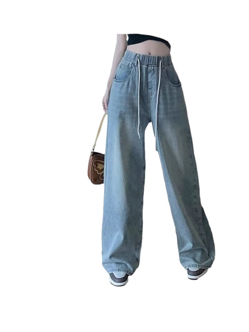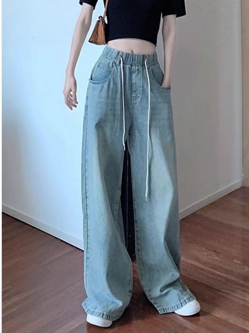 Главная страница > Весенне-летние новые женские джинсы с эластичной резинкой на талии, с высокой талией, больших размеров, утягивающие, прямые, свободные, широкие, брюки в пол, модные модели.