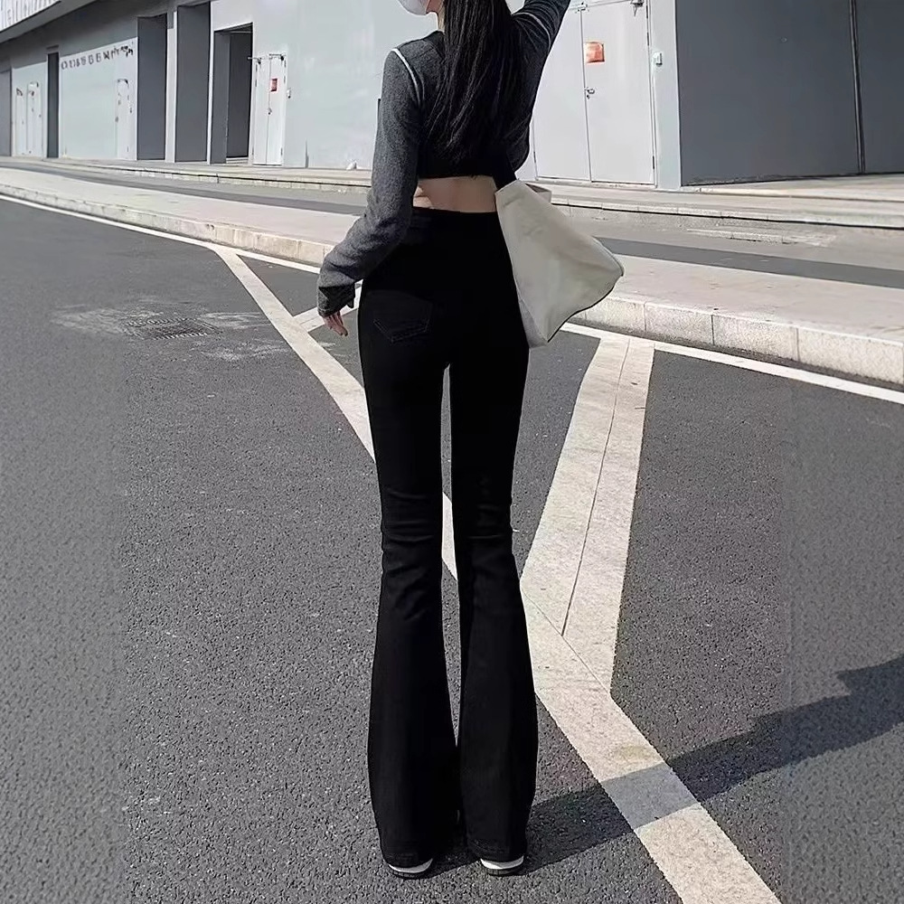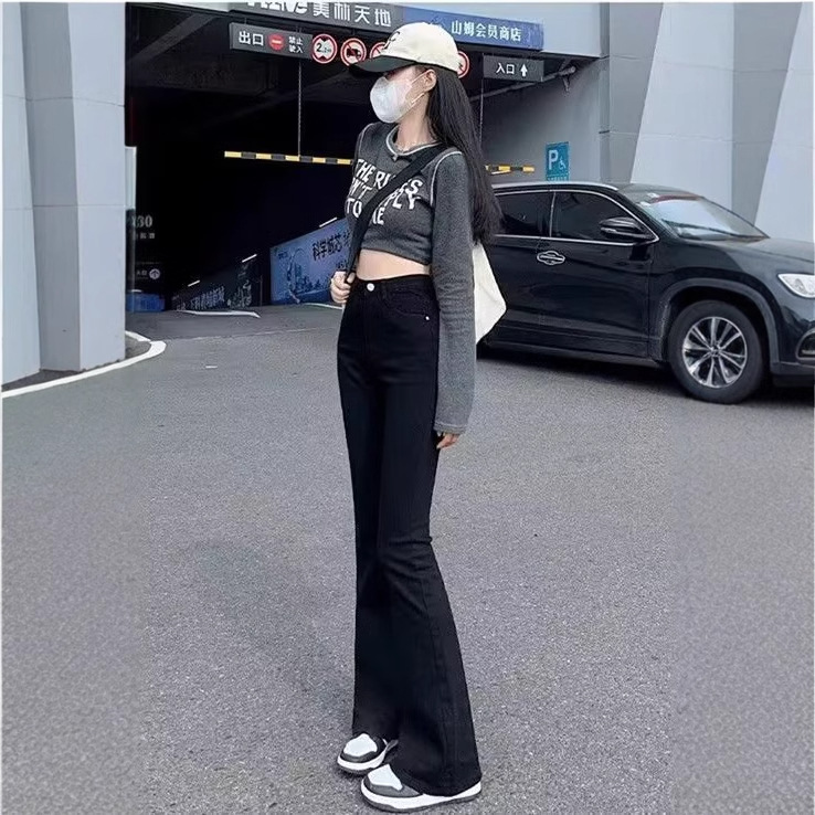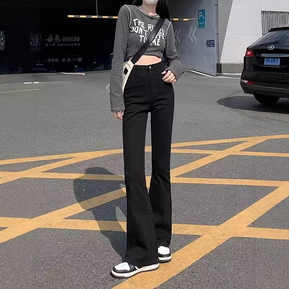 Узкая версия джинсов микро-эла женские осенние и зимние маленькие тонкие черные светлые брюки с высокой талией подковы