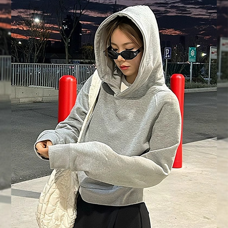 Главная страница > Серая короткая толстовка с капюшоном для женщин, осень-зима 2025, новый стиль, маленькая бархатная утолщенная свободная толстовка с капюшоном, внутренний топ