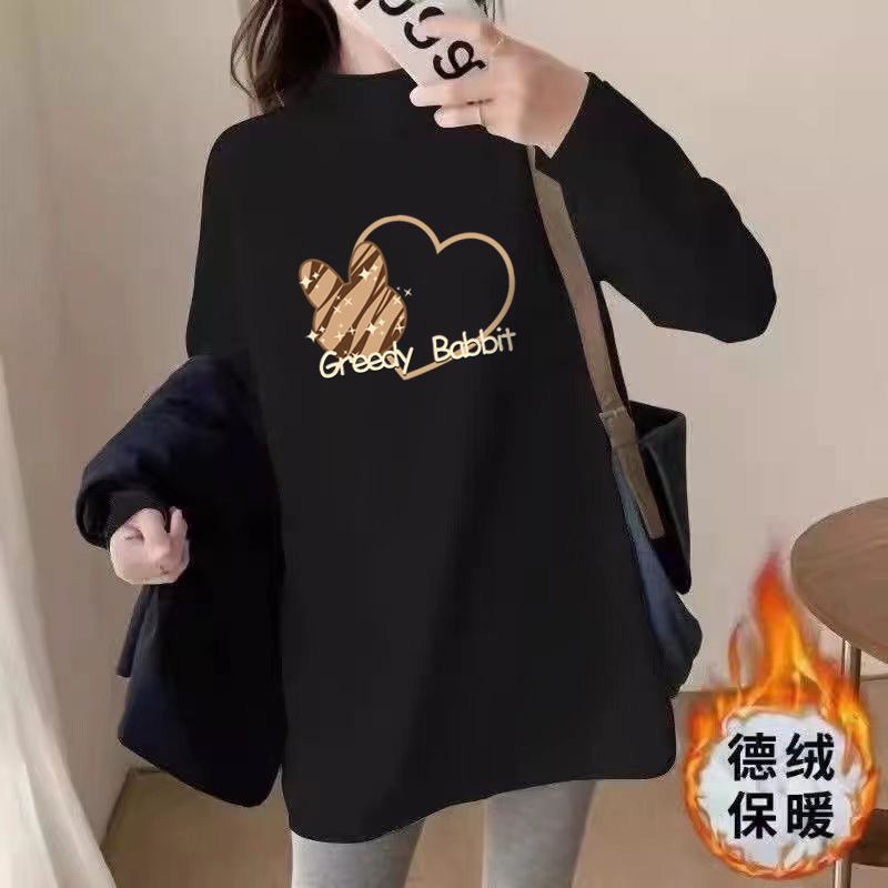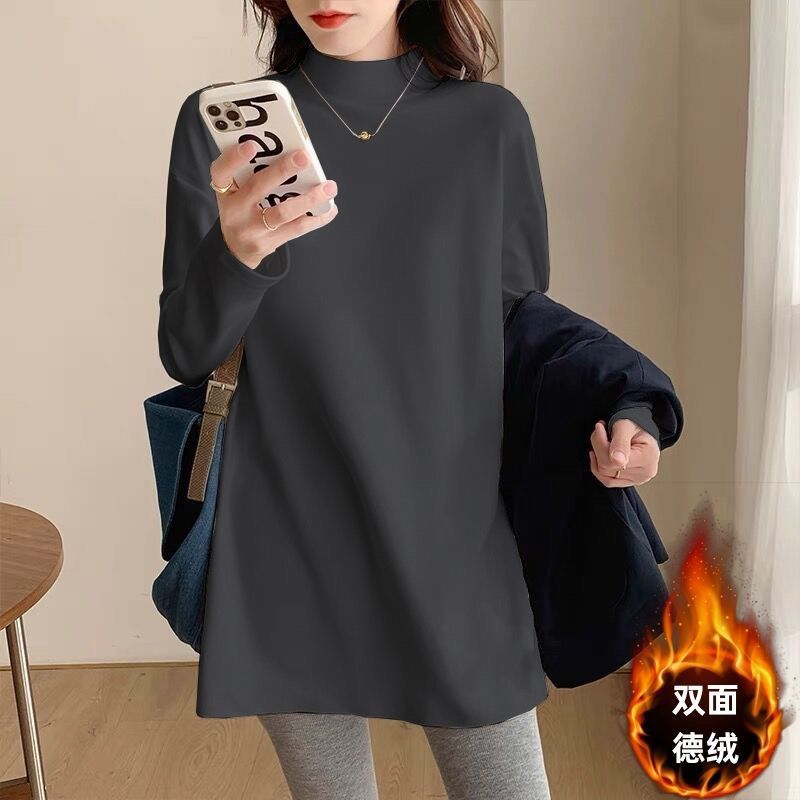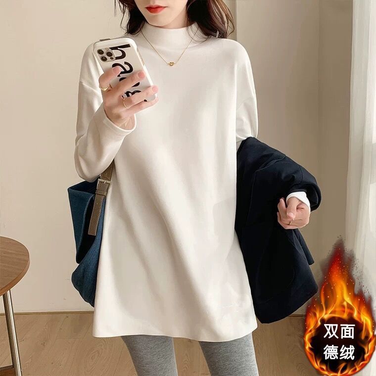 Главная страница > Delong наполовину воротник с высоким воротником осенью и зимой, толстая и теплая нижняя рубашка, женская свободная футболка с длинными рукавами